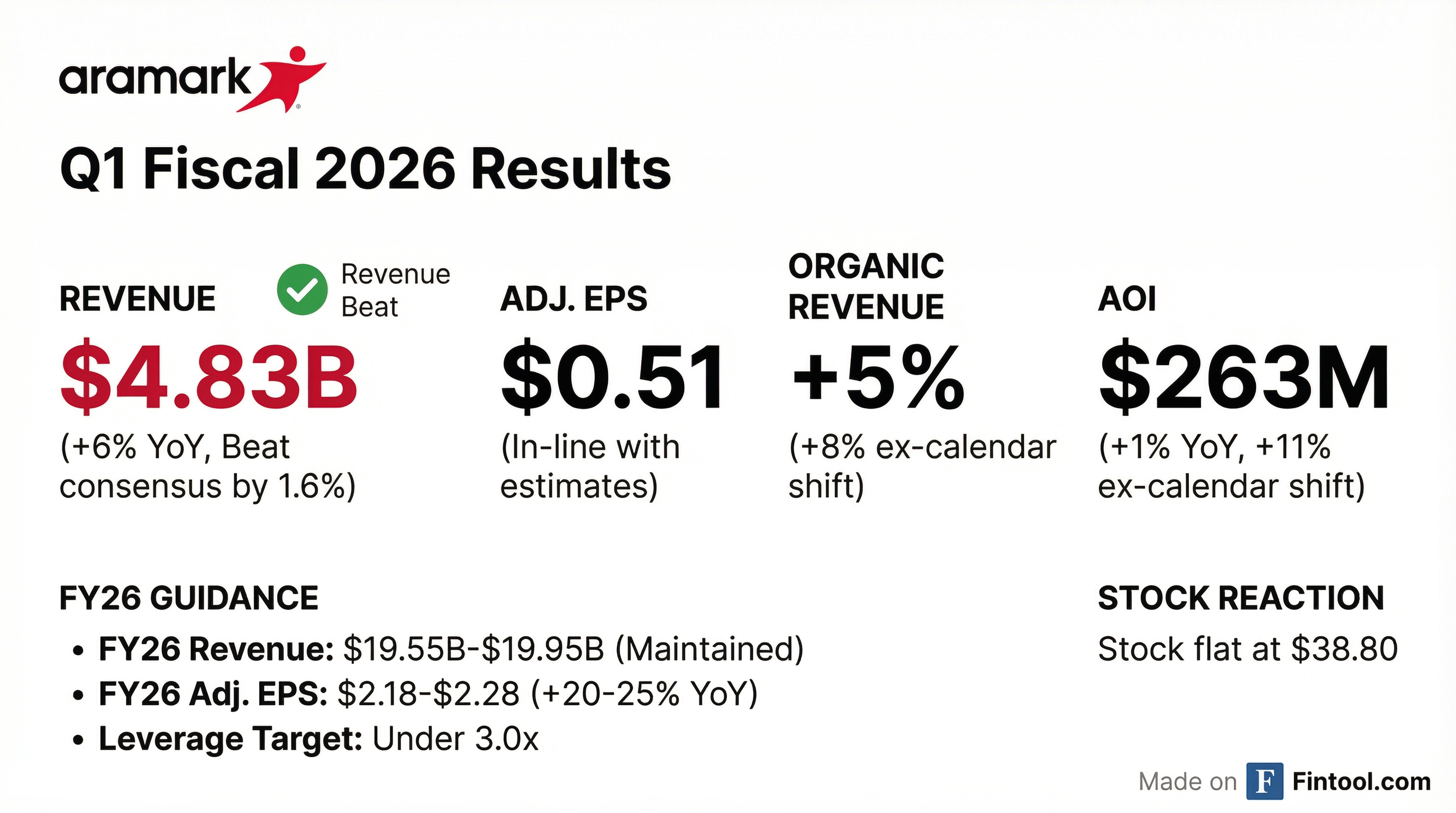 - Aramark reported Q1 revenue of approximately $4.83 billion and adjusted EPS of $0.51, slightly topping estimates.