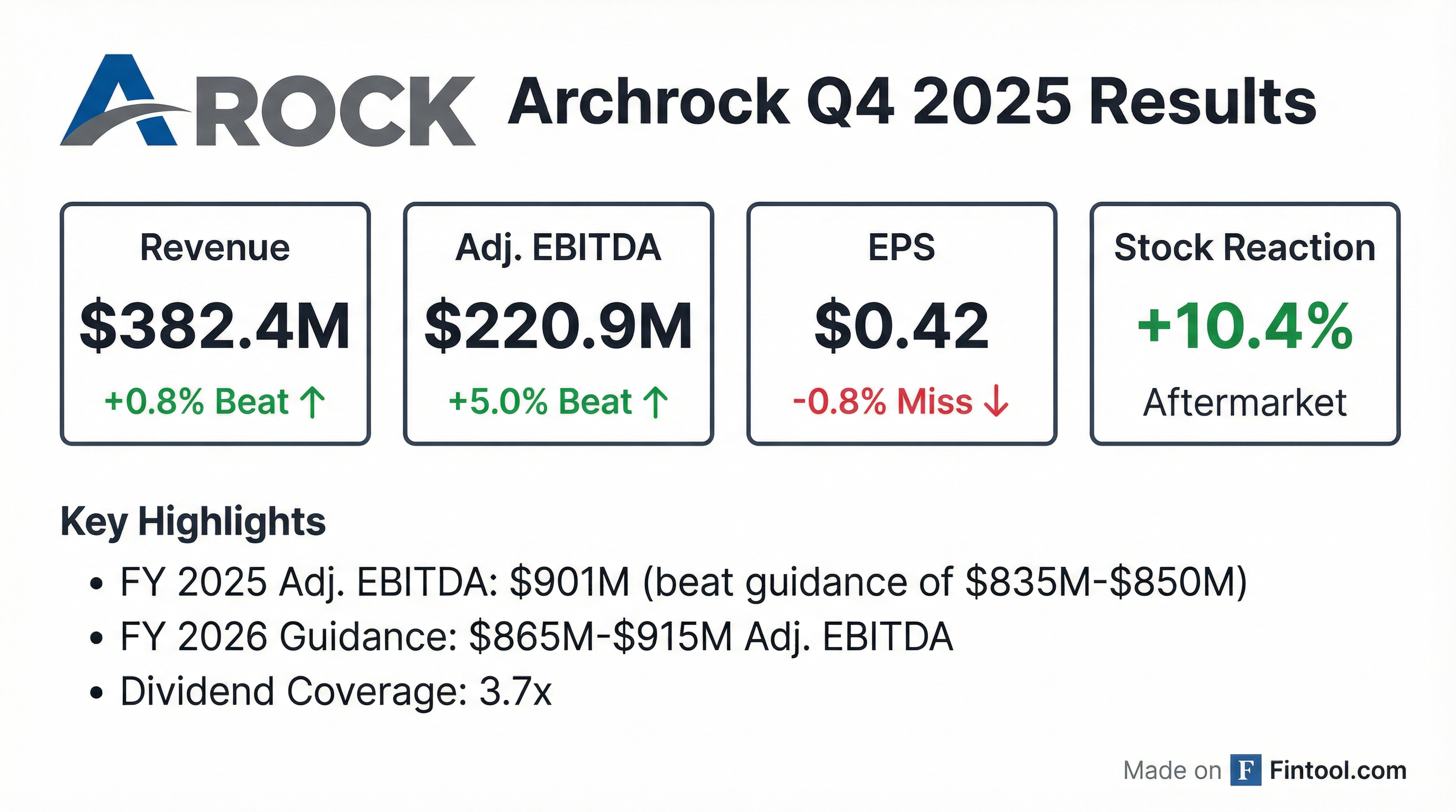 - Archrock reported strong financial results for Q4 and full year 2025, with revenue reaching $377.1 million and $1,489.8 million, respectively, and full year 2025 Adjusted EBITDA of $900.9 million exceeding the guidance midpoint.