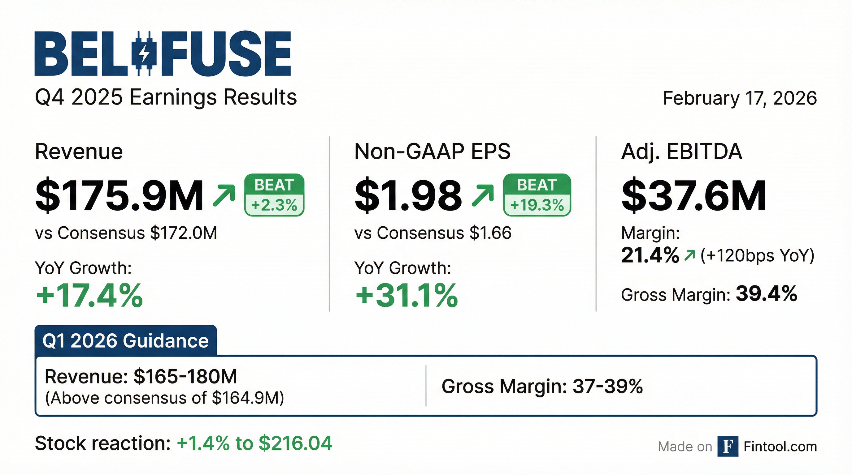- Bel Fuse Inc. reported strong financial results for Q4 2025, with net sales of $175.9 million, up 17.4% from Q4 2024, and full-year 2025 net sales of $675.5 million, a 26.3% increase from 2024.