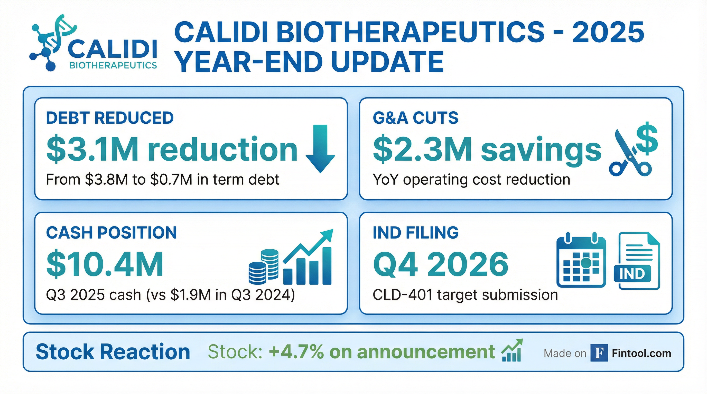 - As of September 30, 2025, Calidi Biotherapeutics had approximately $10.4 million in cash and $0.2 million in restricted cash.