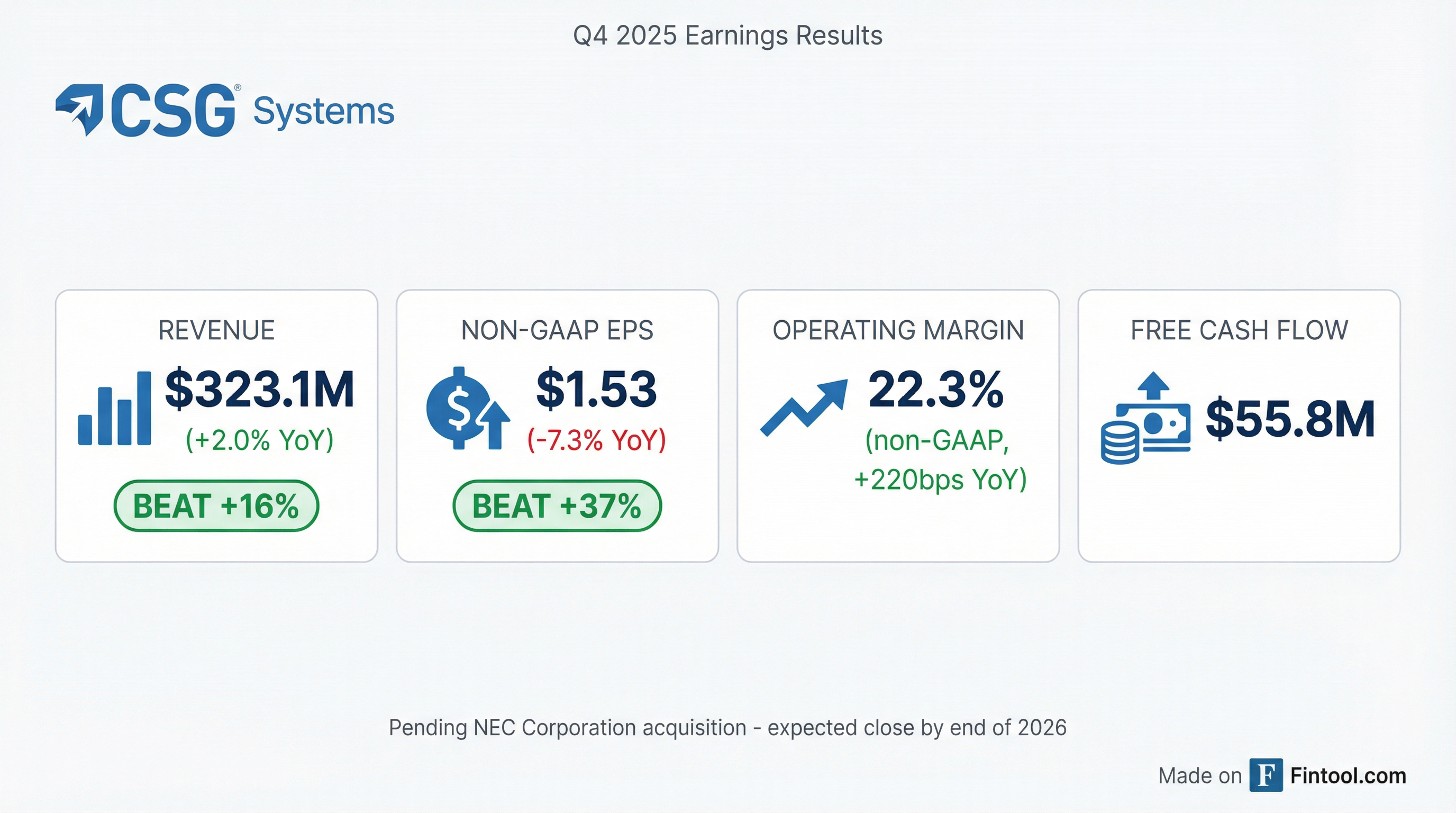 - CSG's stockholders approved the Merger Agreement with NEC Corporation on January 30, 2026, with the merger expected to close by the end of 2026.