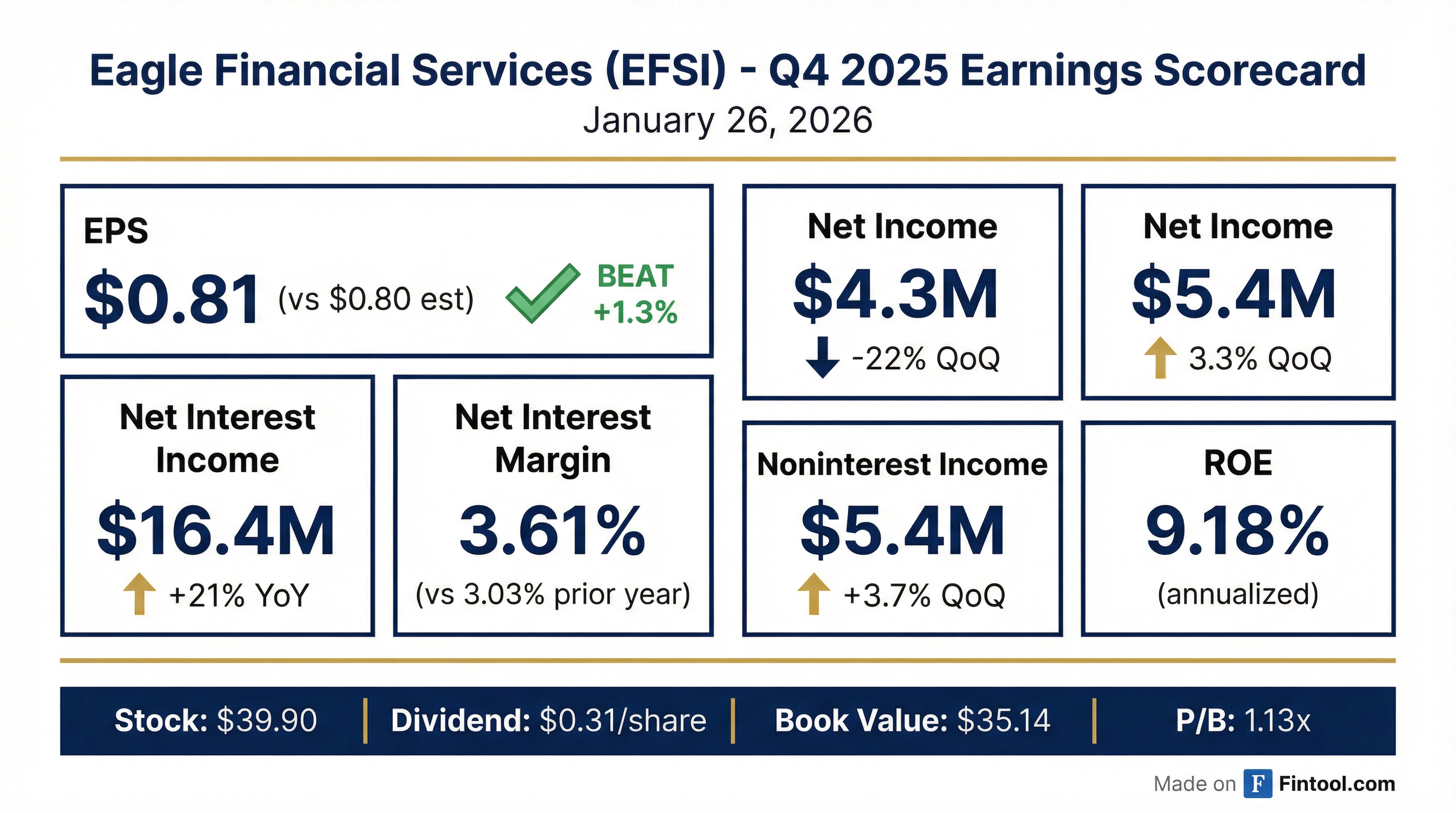 EAGLE FINANCIAL SERVICES (EFSI)ยทEarnings Reports