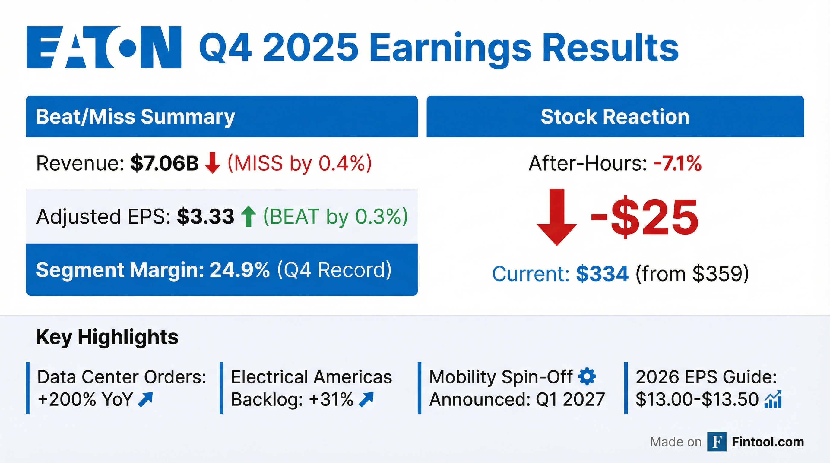 - In Q4 2025, Eaton delivered EPS of $2.91 (adjusted $3.33), up 19% and 18% year-over-year, marking fourth-quarter records.
