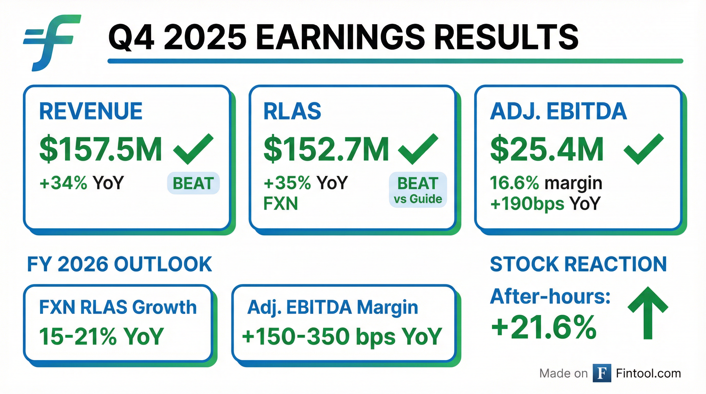 - Flywire exceeded its Q4 2025 guidance, reporting Total Revenue Less Ancillary Services (RLAS) of $152.7 million and Adjusted EBITDA of $25.4 million, beating guidance midpoints of $145 million and $23 million, respectively.