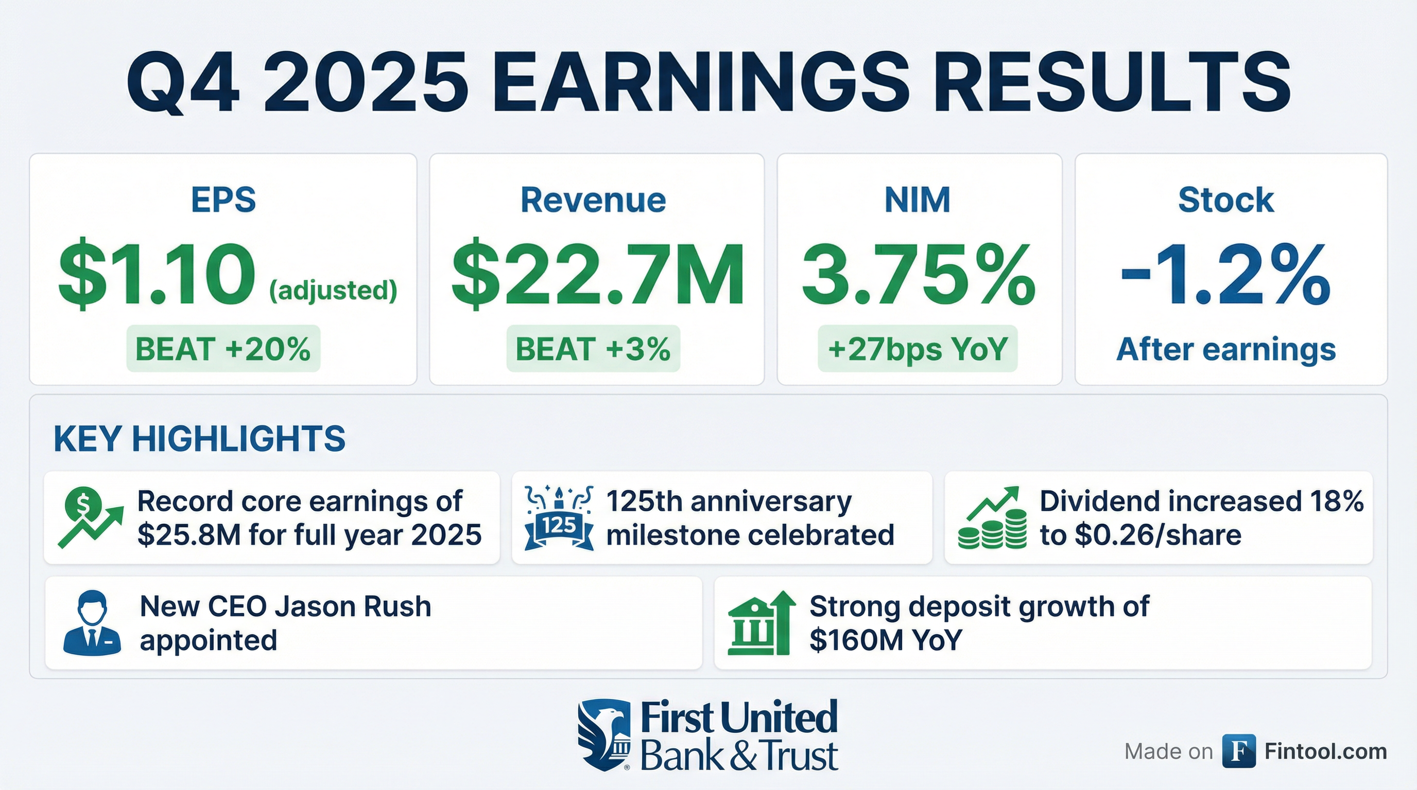 - Operating expenses in Q4 2025 increased by $1.9 million compared to the prior quarter, primarily due to a $1.6 million write-down on an other real estate owned (OREO) property. Jason B. Rush was also appointed President and Chief Executive Officer.
