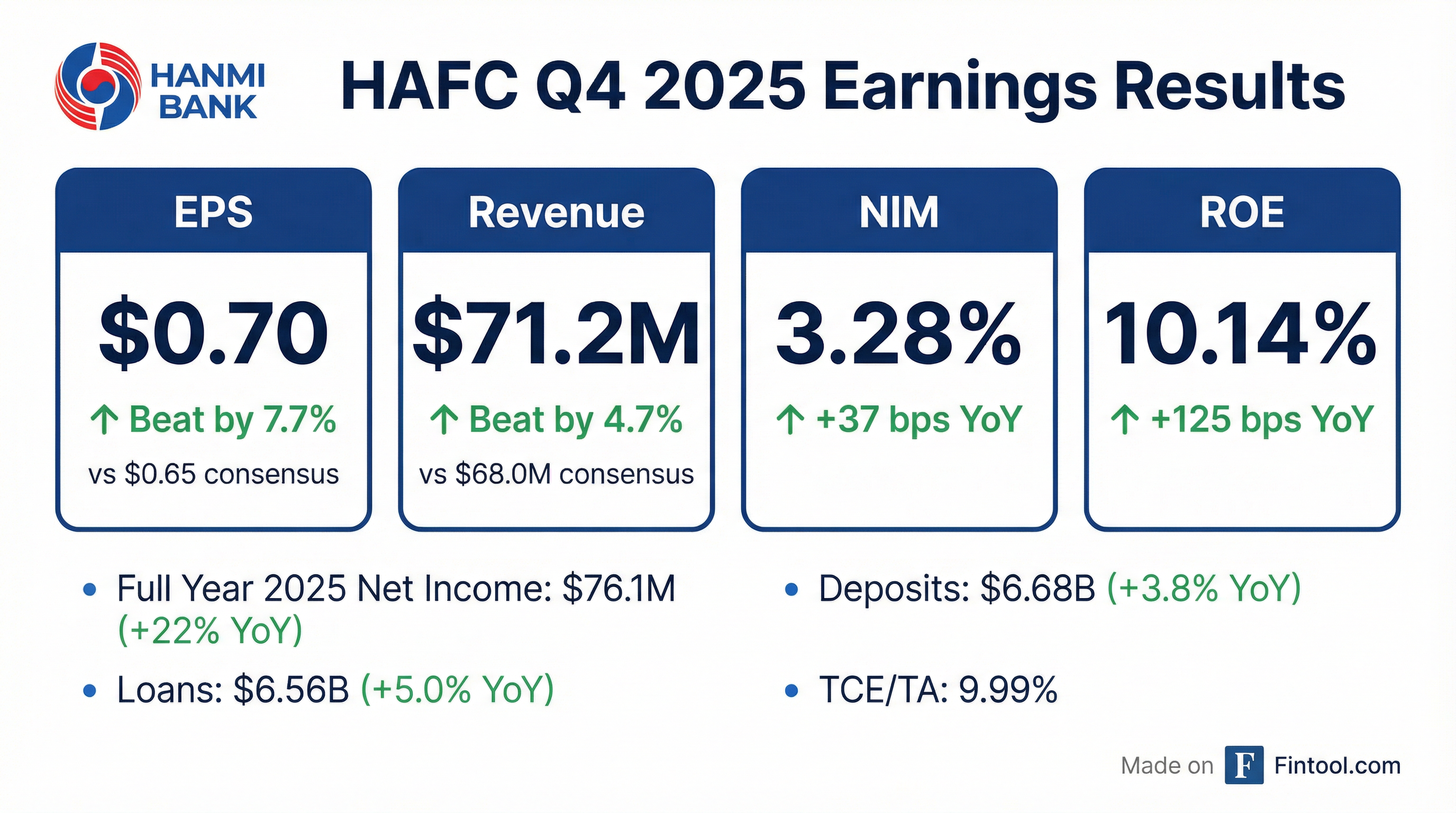 HANMI FINANCIAL (HAFC)ยทEarnings Reports