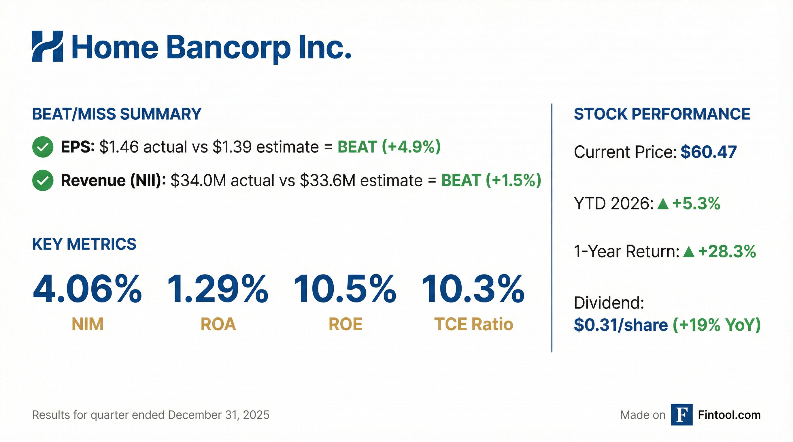 HOME BANCORP (HBCP)ยทEarnings Reports