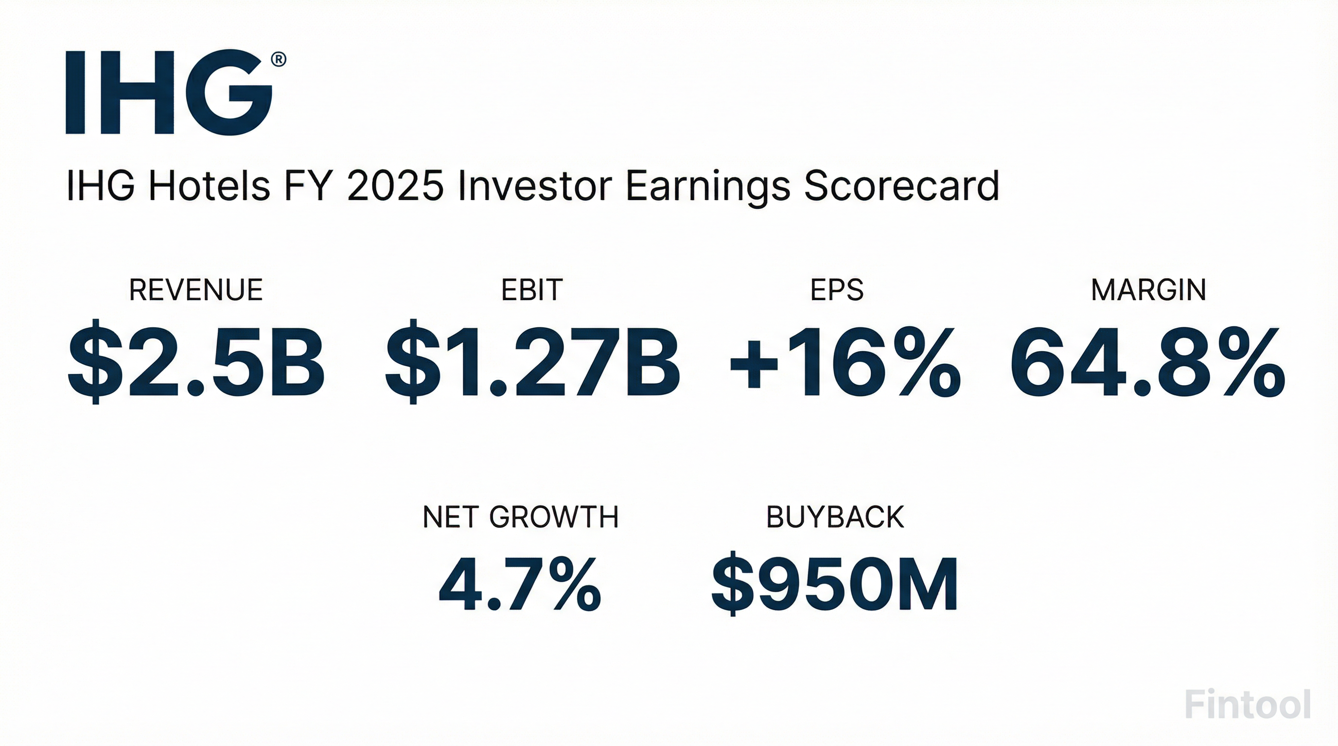 - IHG reported excellent financial performance for the full year 2025, with RevPAR growth of 1.5%, a 13% increase in EBIT, and adjusted EPS growth of 16%. The fee margin increased by 360 basis points to 64.8%.