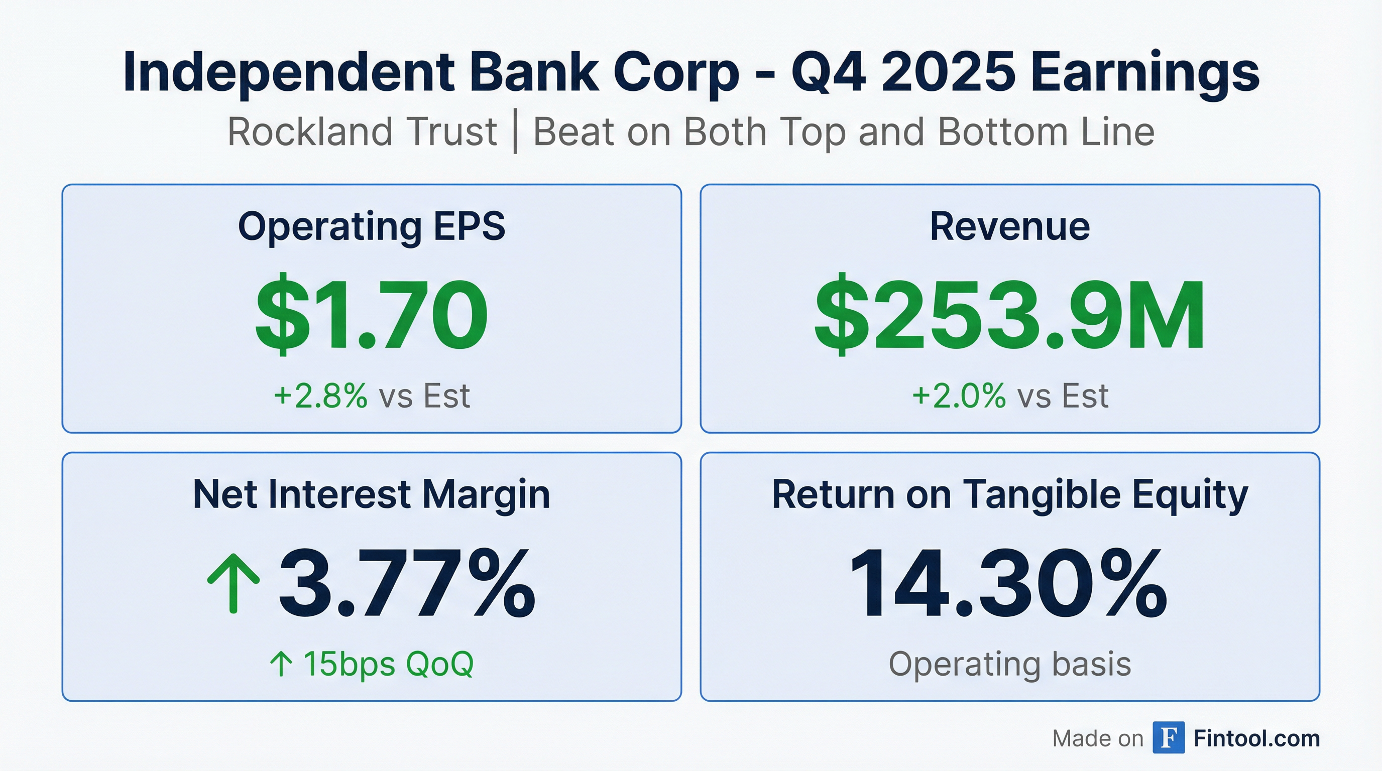 - INDB reported Q4 2025 adjusted operating EPS of $1.70, with an operating return on average assets of 1.34% and an operating return on average tangible common equity of 14.30%.