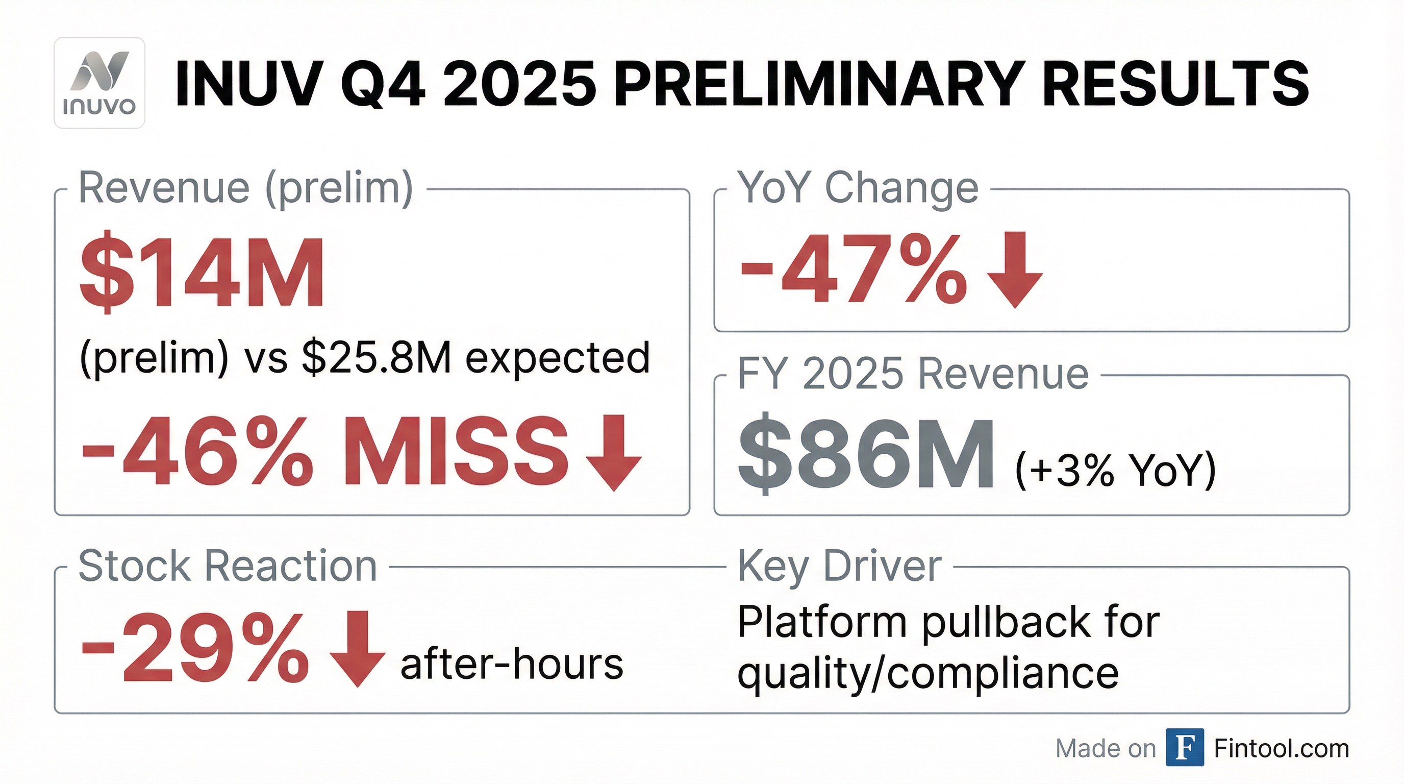 - Inuvo now expects full year 2025 revenues to be approximately $86 million, a reduction attributed to a "broader market shift" in Q4 2025 involving "bad actors" that necessitated intentionally slowing growth.