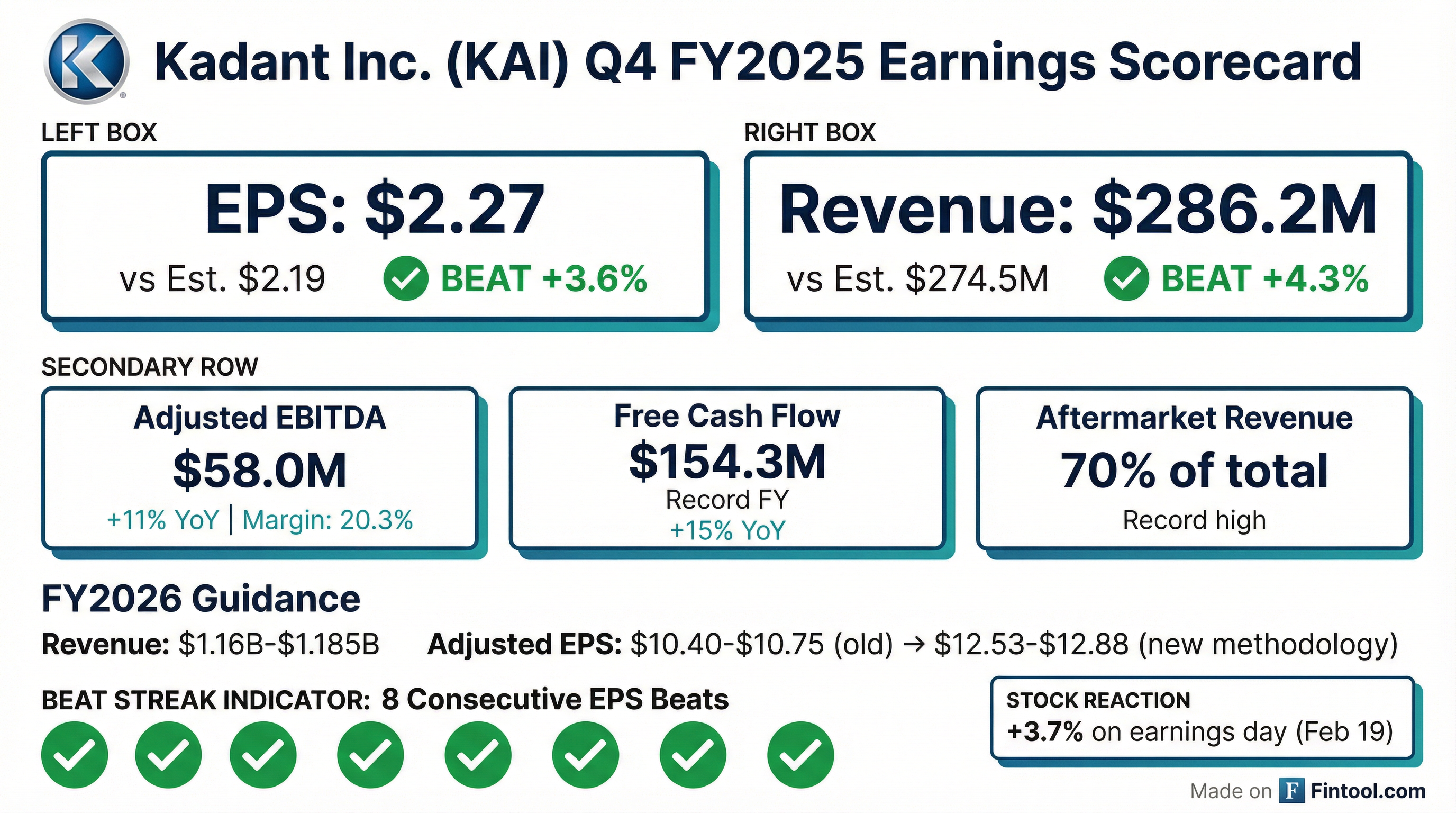- Kadant Inc. (KAI) announced on February 19, 2026, a new methodology for calculating adjusted operating income, adjusted net income, and adjusted EPS.