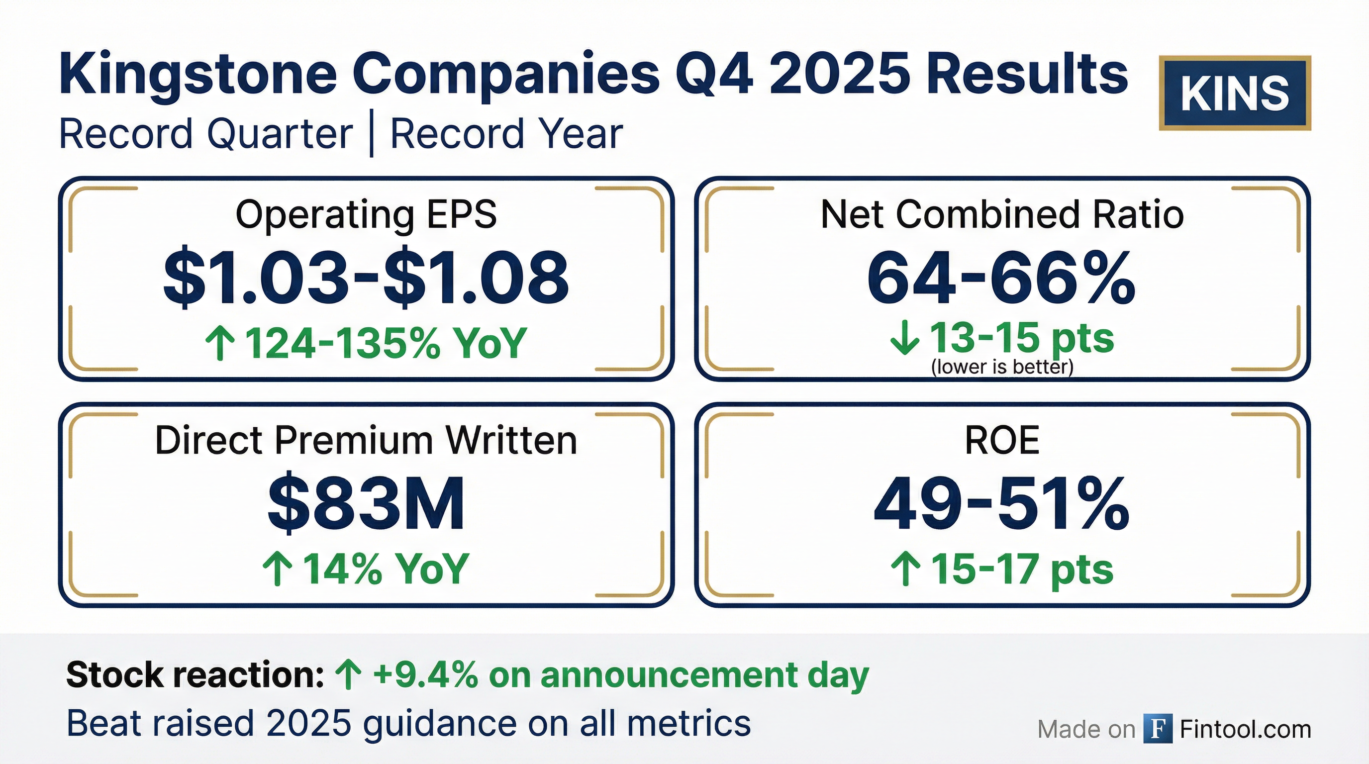 - Kingstone Companies, Inc. (KINS) announced preliminary record financial results for the fourth quarter and full year ended December 31, 2025, marking the strongest quarterly and annual performance in company history.
