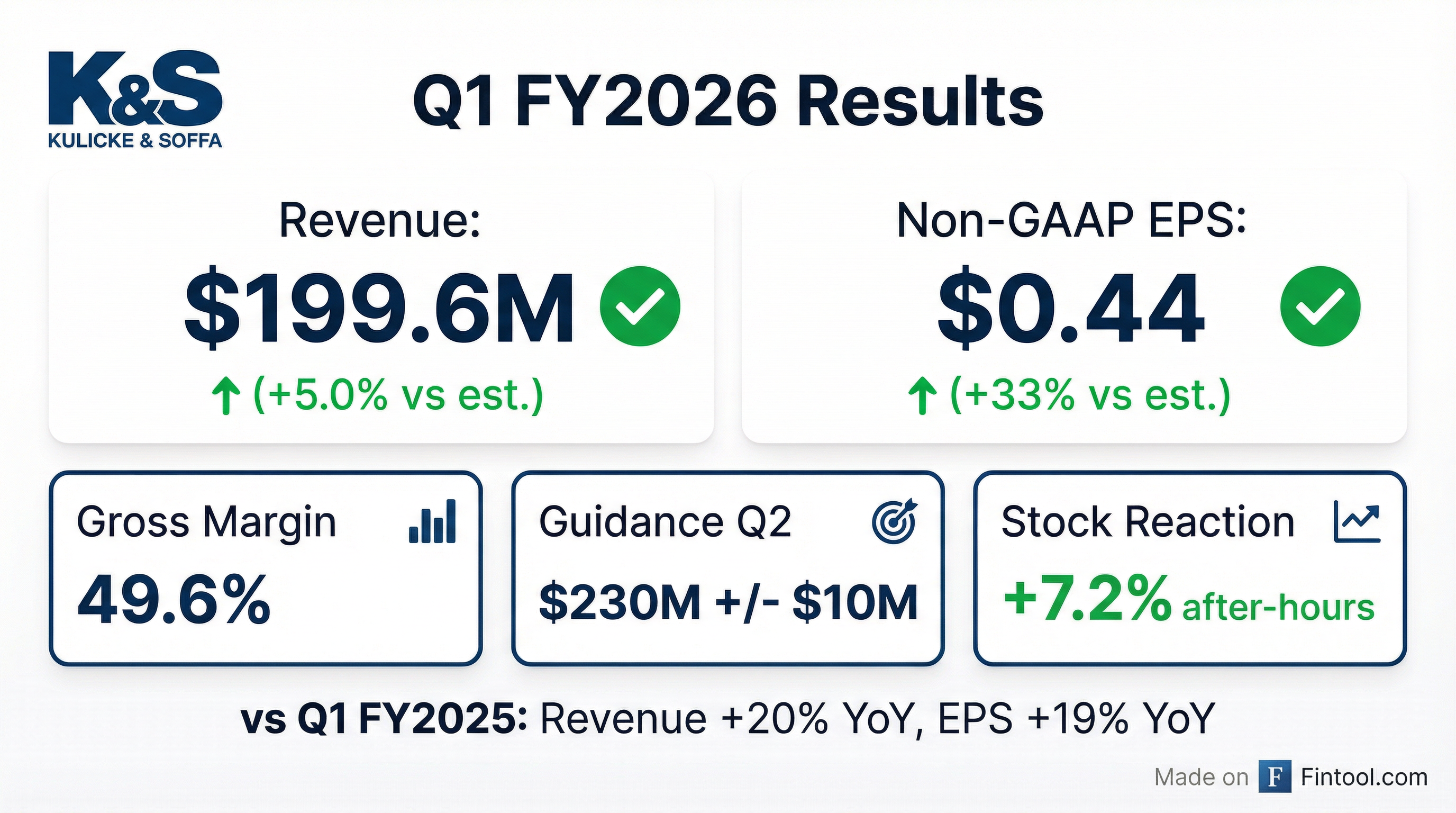 - K&S expects net revenue for the first fiscal quarter of 2026 to be approximately $190 million +/- $10 million, with GAAP diluted EPS of approximately $0.18 +/- 10% and non-GAAP diluted EPS of approximately $0.33 +/- 10%.