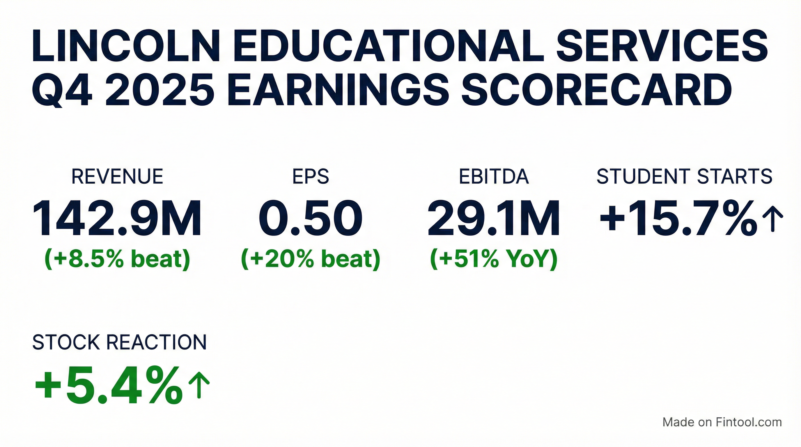 - Lincoln Educational Services Corporation reported strong financial results for Q4 2025, with revenue increasing 19.7% to $142.9 million and net income rising to $12.7 million, or $0.40 per share.
