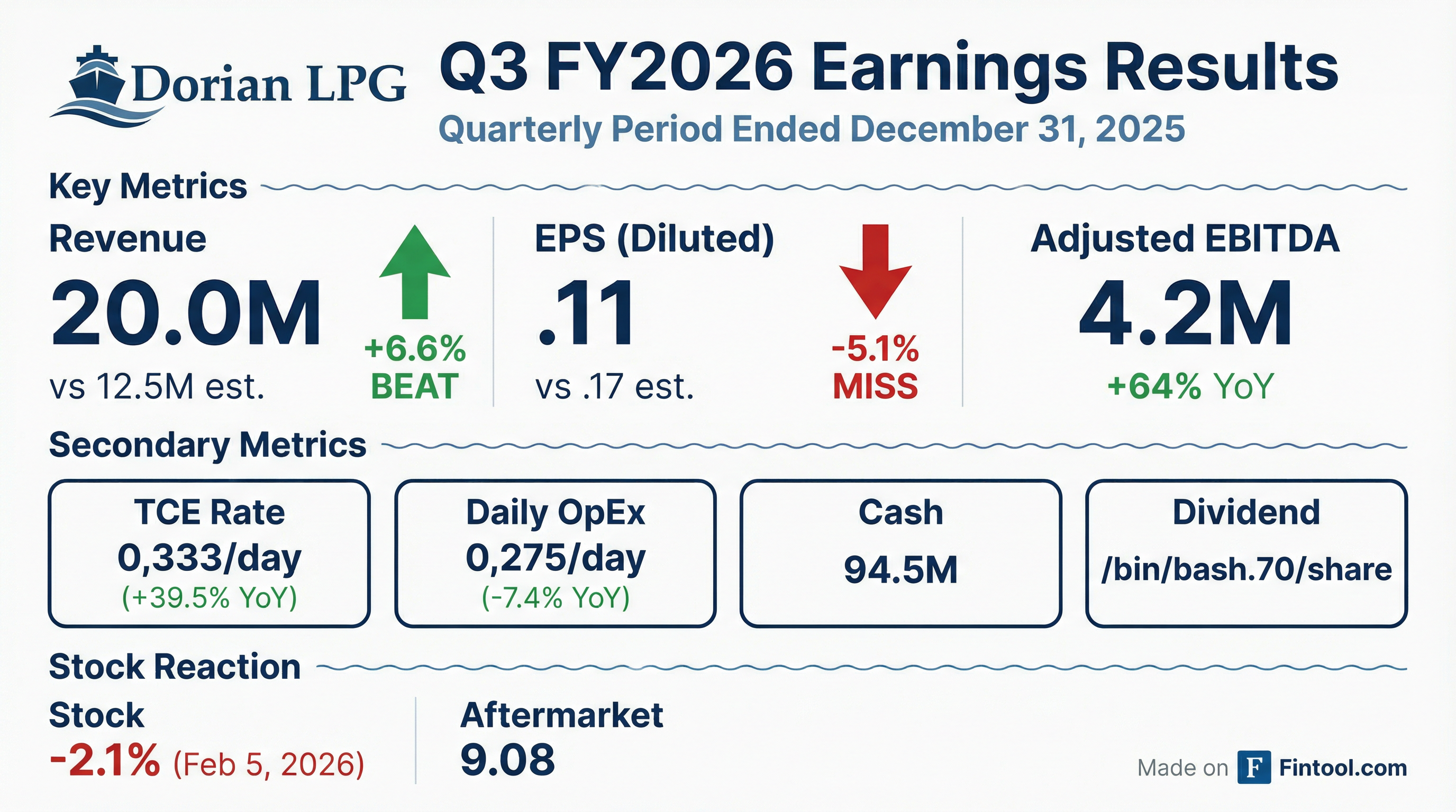 Earnings summaries and quarterly performance for DORIAN LPG.