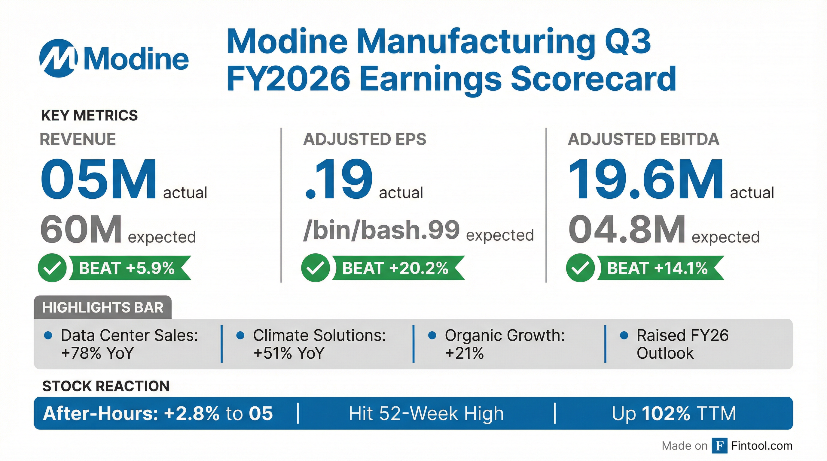 - Modine reported strong Q3 FY26 financial results, with Net Sales of $805.0 million, Adjusted EBITDA of $119.6 million, and Adjusted EPS of $1.19.