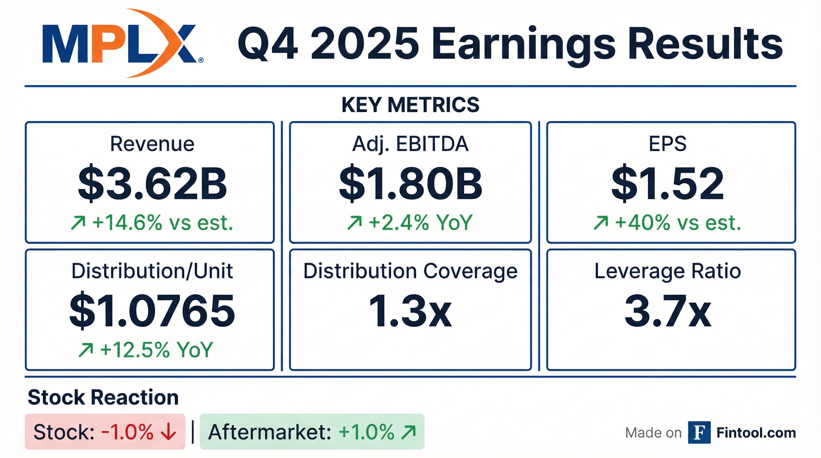 - MPLX reported strong fourth-quarter 2025 results, with GAAP EPS of $1.17 and revenue of $3.25 billion, representing a 6.2% year-over-year increase.
