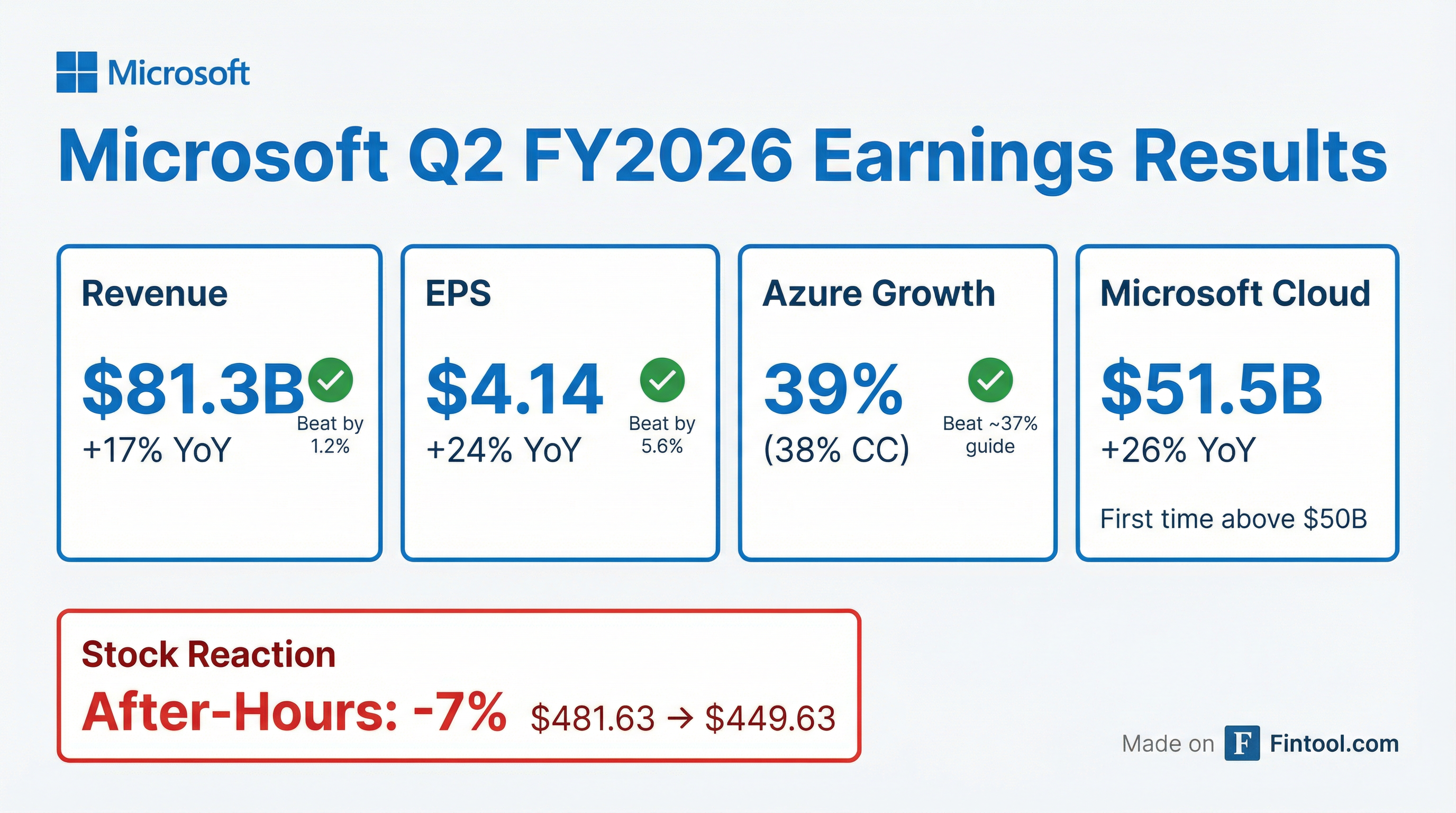 - Revenue of $81.3 billion, up 17% year-over-year; operating income grew 21% and EPS was $4.14, up 24% y/y (adjusted for OpenAI impact).