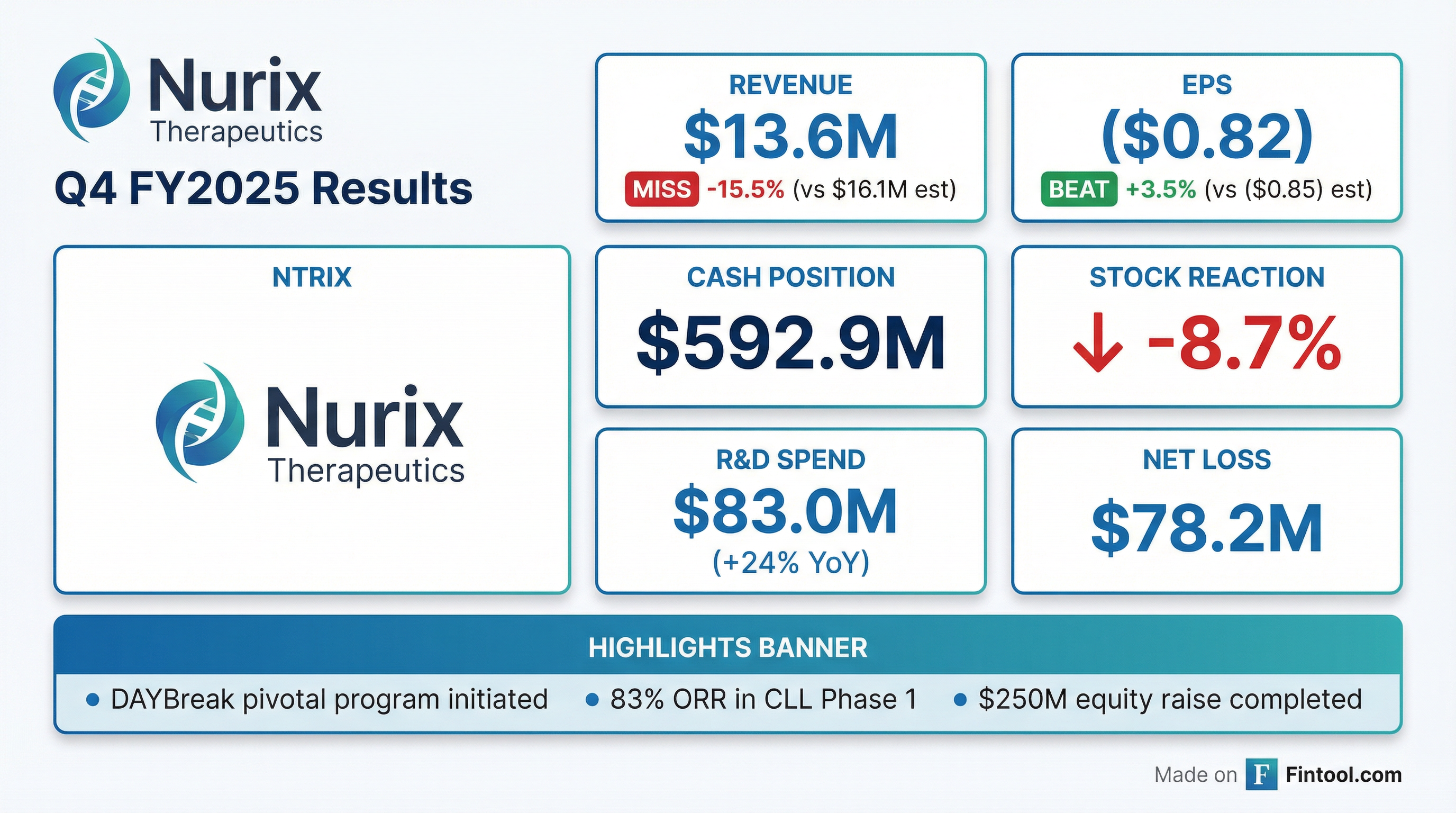 - Nurix Therapeutics reported total revenue of $84.0 million and a net loss of $264.5 million or ($3.05) per share for the fiscal year ended November 30, 2025. The company held $592.9 million in cash, cash equivalents, and marketable securities as of November 30, 2025.