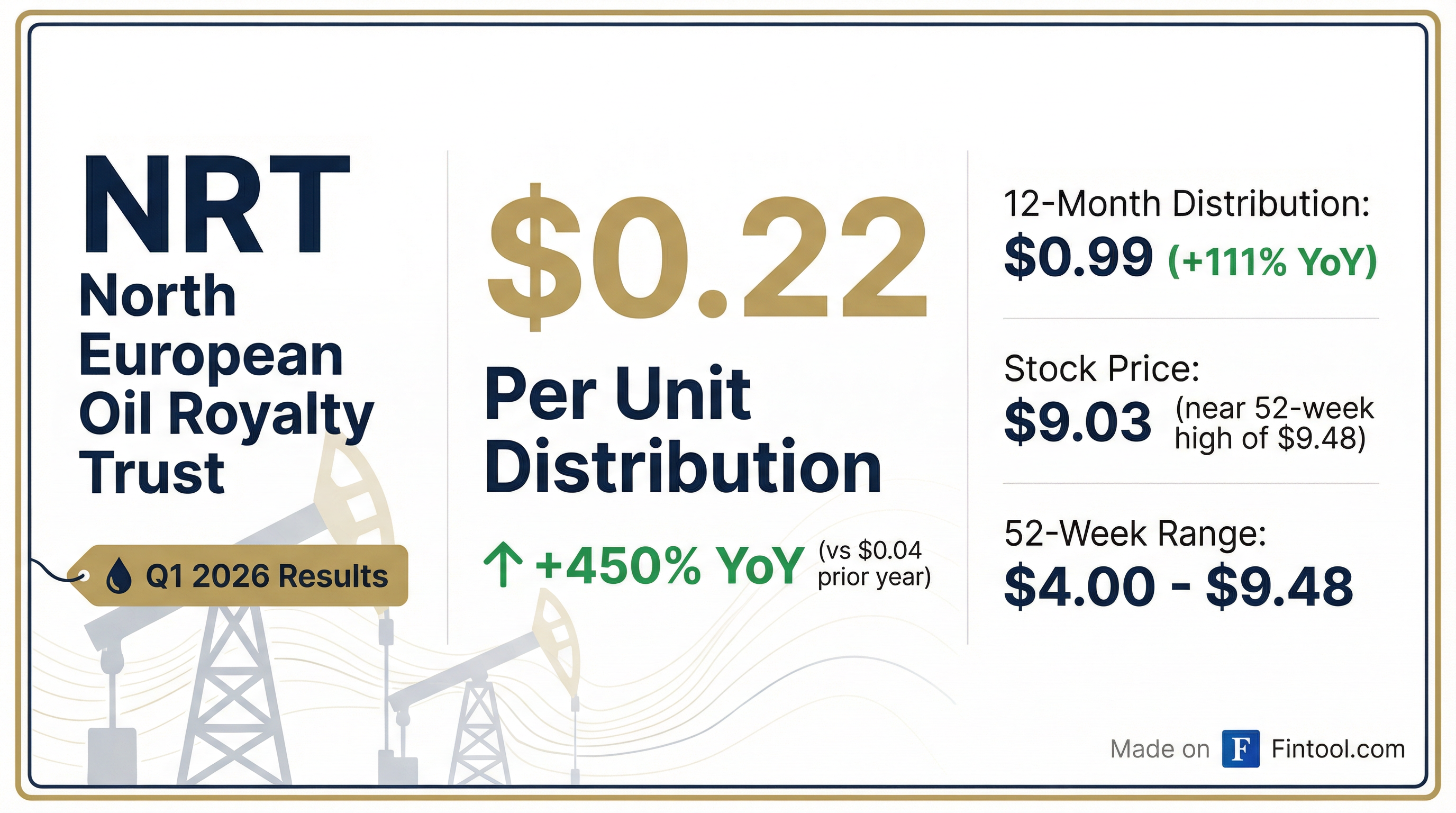 - North European Oil Royalty Trust (NRT) announced a quarterly distribution of $0.22 per unit for the first quarter of fiscal 2026.