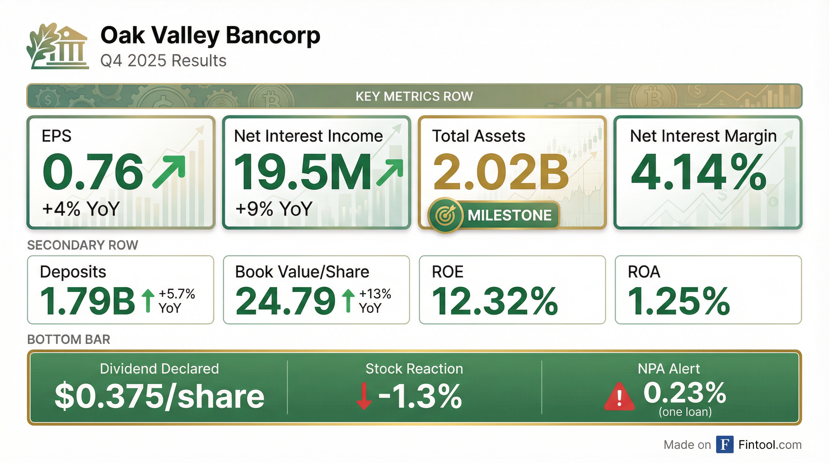 Earnings summaries and quarterly performance for Oak Valley Bancorp.
