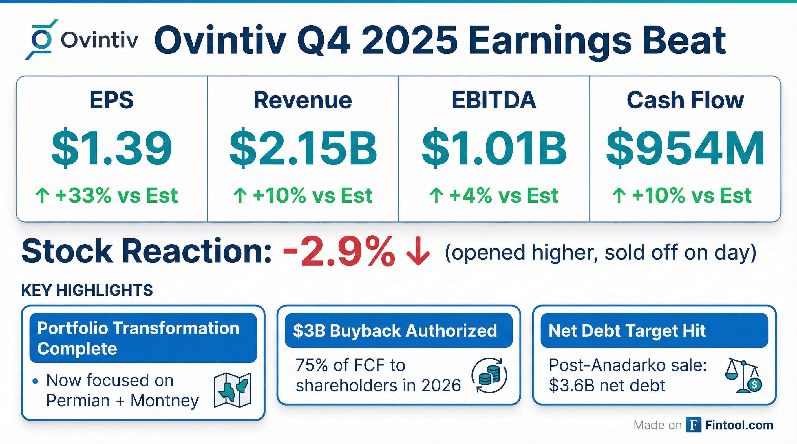 - Ovintiv reported Q4 2025 free cash flow of $508 million and $3.81 cash flow per share, contributing to over $1.6 billion in free cash flow for the full year 2025.