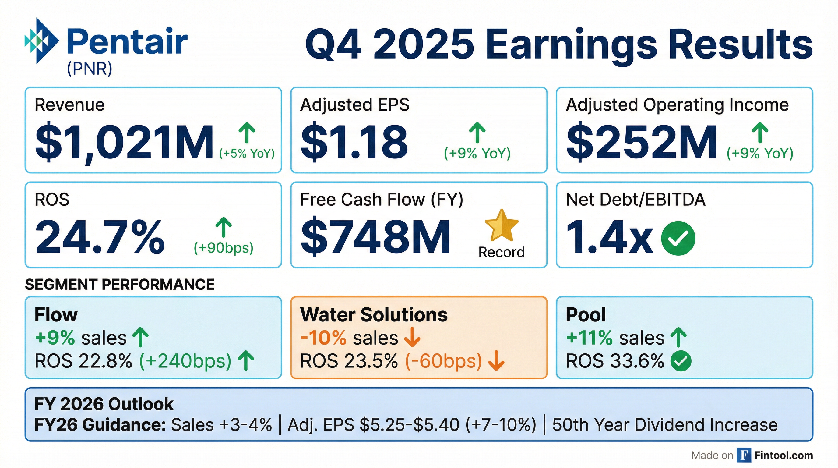- Pentair reported fourth quarter sales of $1,021 million (up 5%) and full-year 2025 sales of $4.2 billion (up 2%).