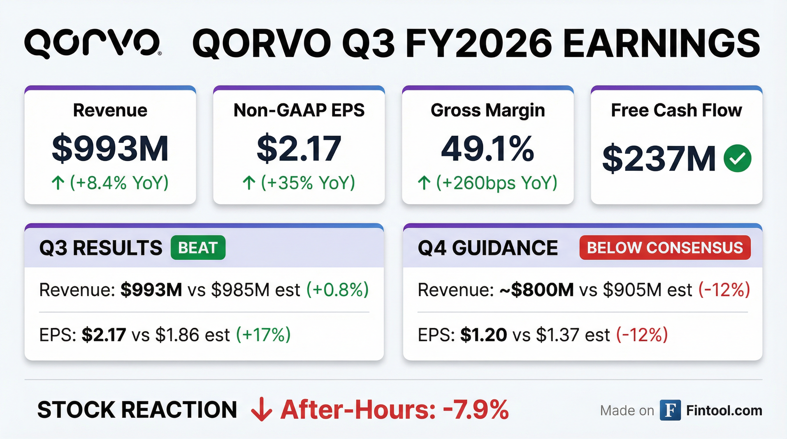 - For the December 2025 quarter, Qorvo expects revenue of $985 million ± $50 million, non-GAAP gross margin of 47–49%, and non-GAAP diluted EPS of $1.85 ± $0.20.