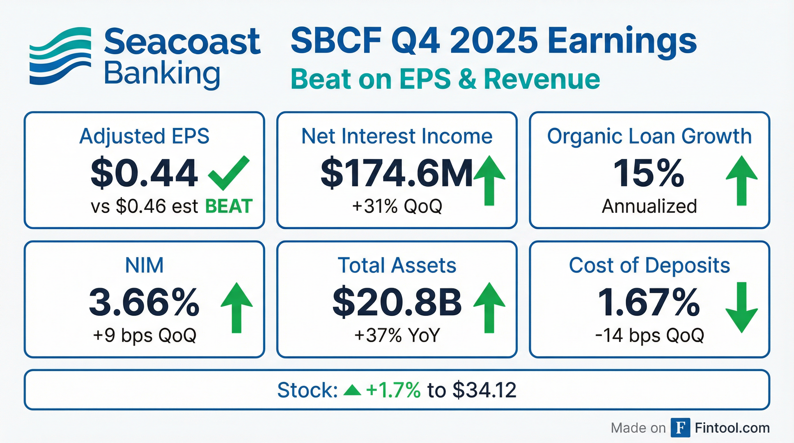 - Seacoast Banking Corporation of Florida (SBCF) reported net income of $34.3 million and adjusted net income of $47.7 million, or $0.44 per diluted share, for the fourth quarter of 2025.