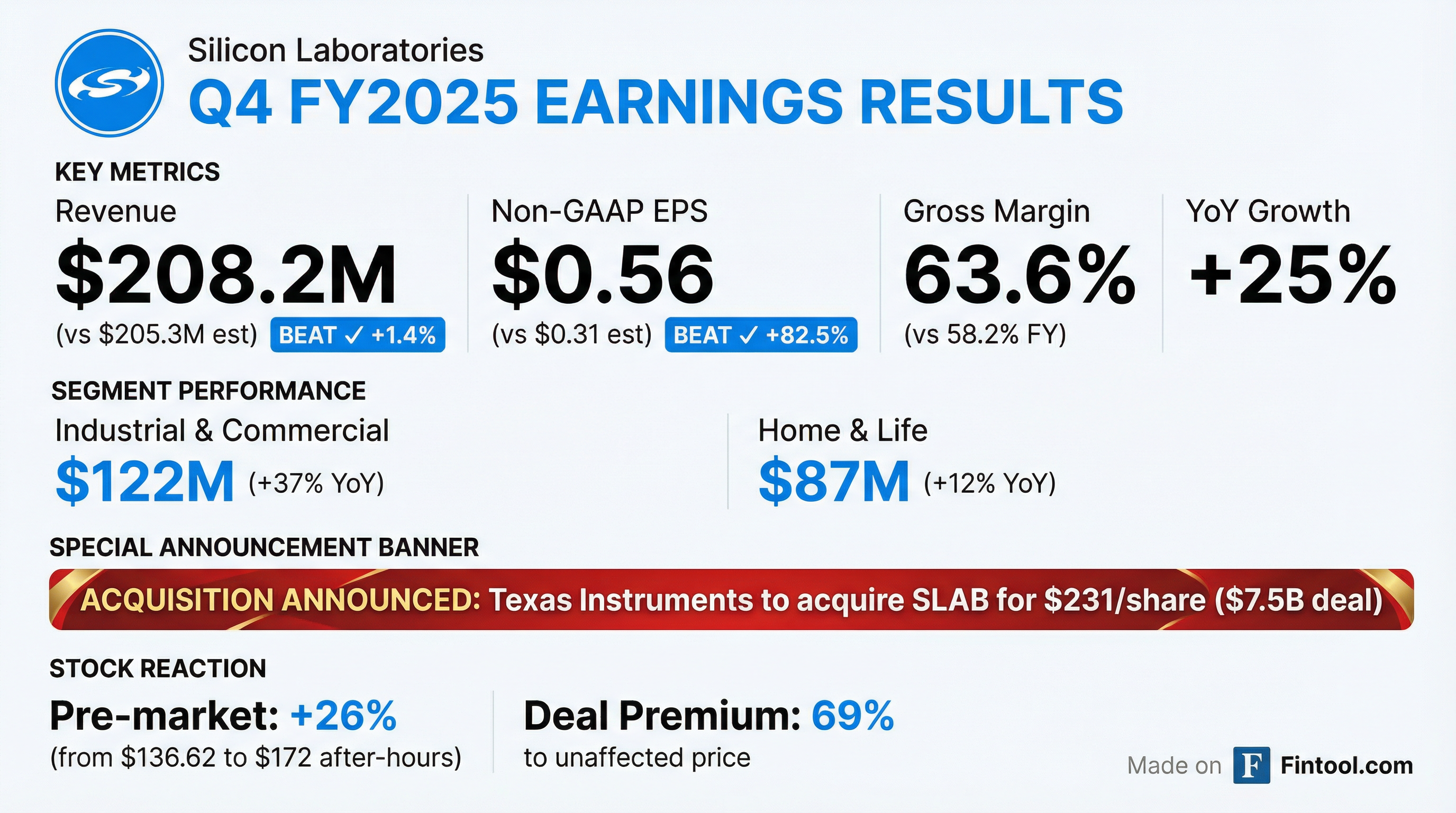 Silicon Labs Reports Strong Q4 and Full Year 2025 Results, Cancels Earnings Call Due to Pending Acquisition