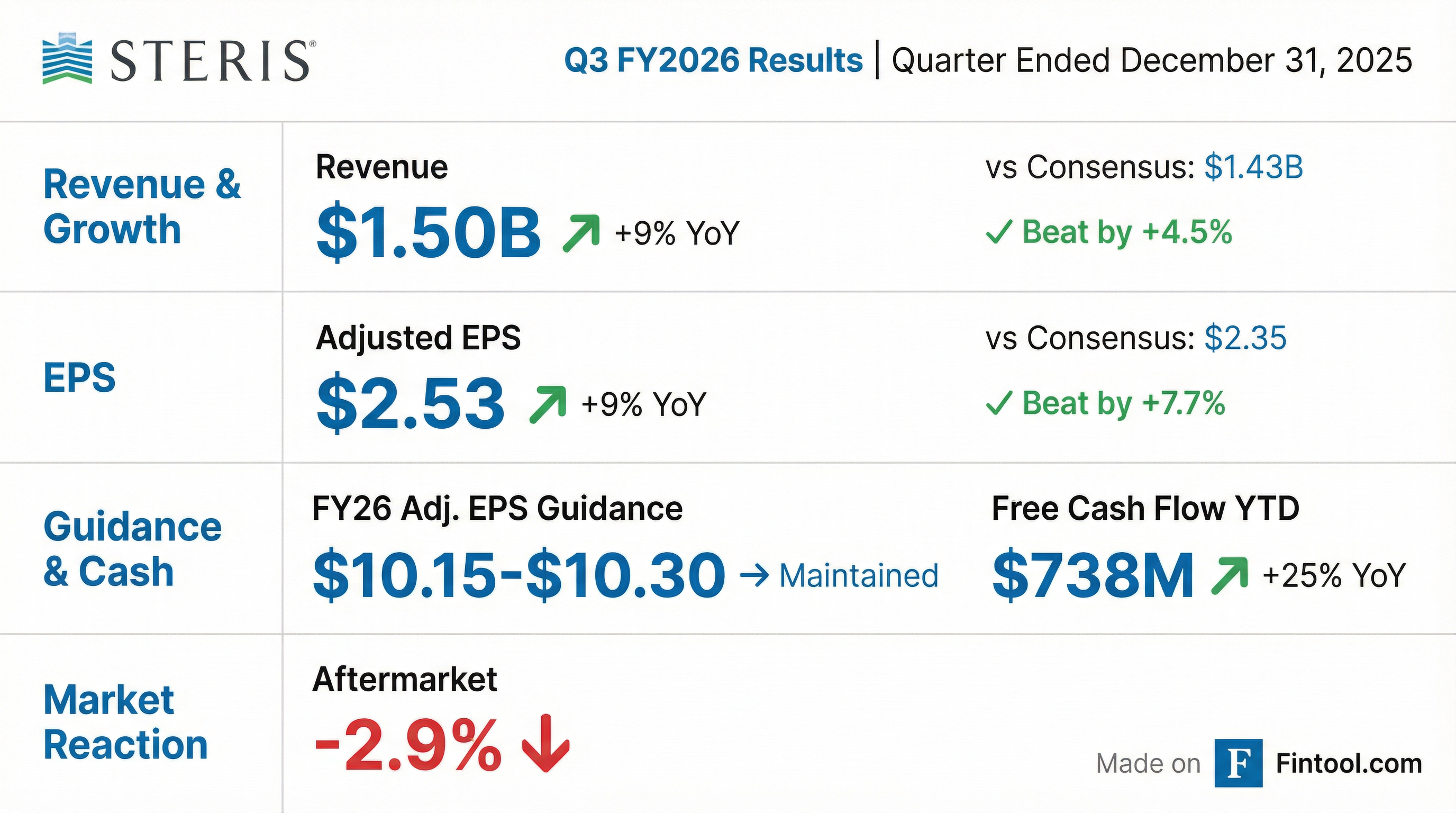 Earnings summaries and quarterly performance for STERIS.