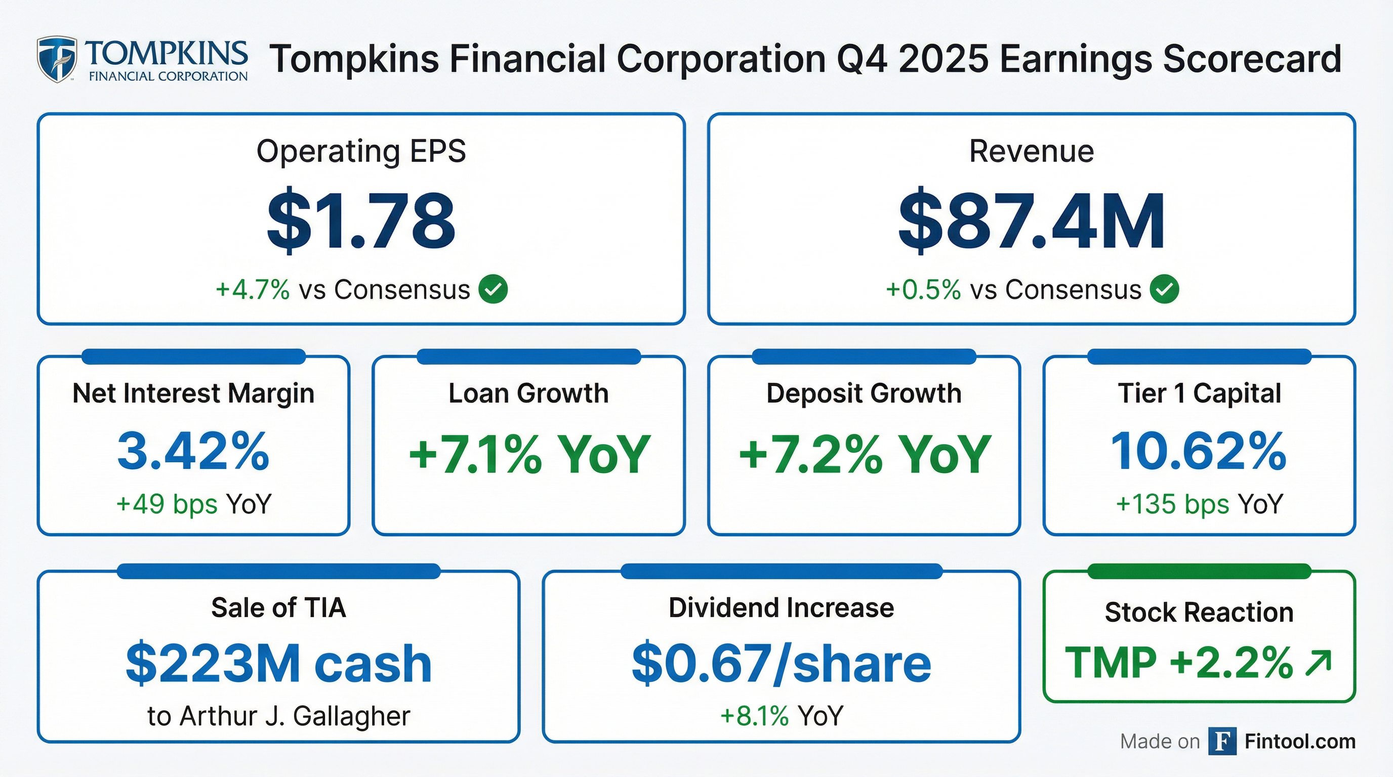 Tompkins Financial Corporation Reports Record Q4 and Full-Year 2025 Earnings Driven by Strategic Sale and Dividend Increase