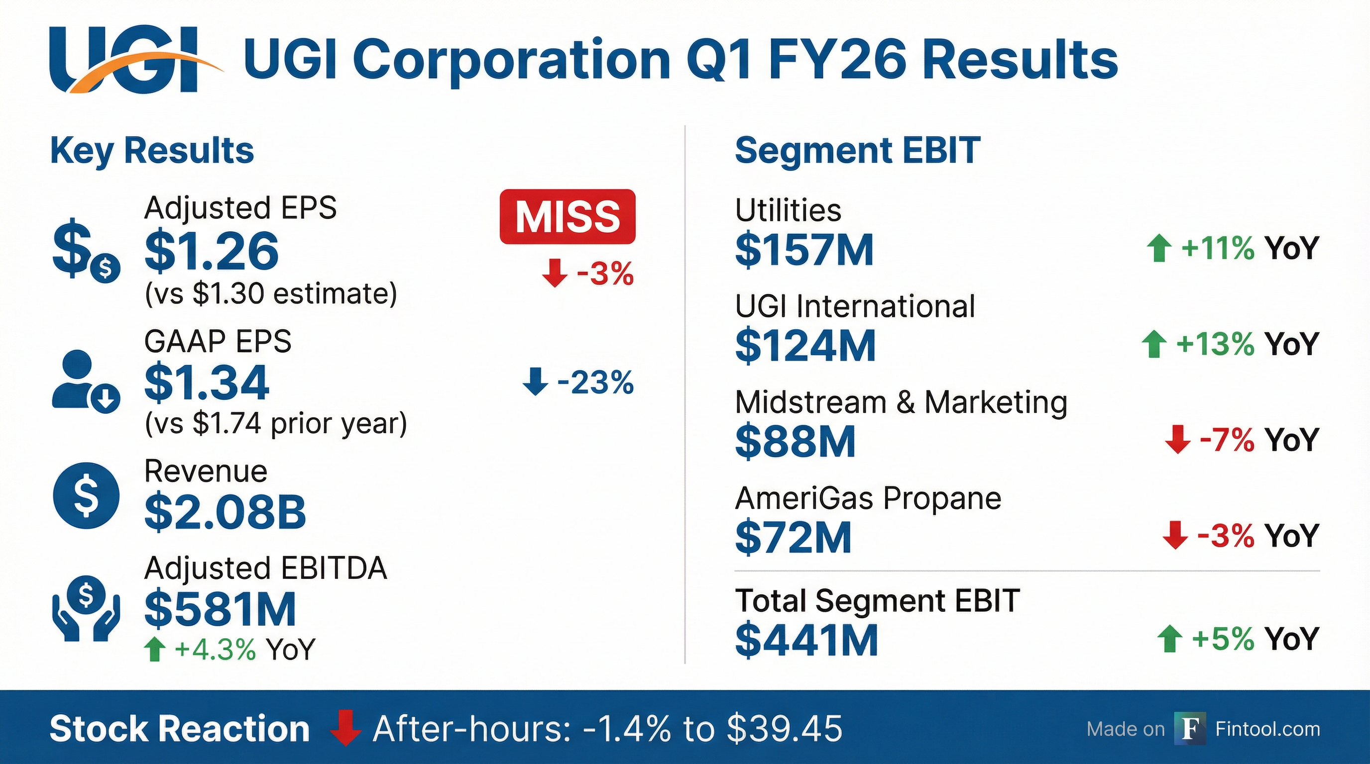 - UGI reported Q1 FY26 GAAP diluted EPS of $1.34 and Adjusted diluted EPS of $1.26.