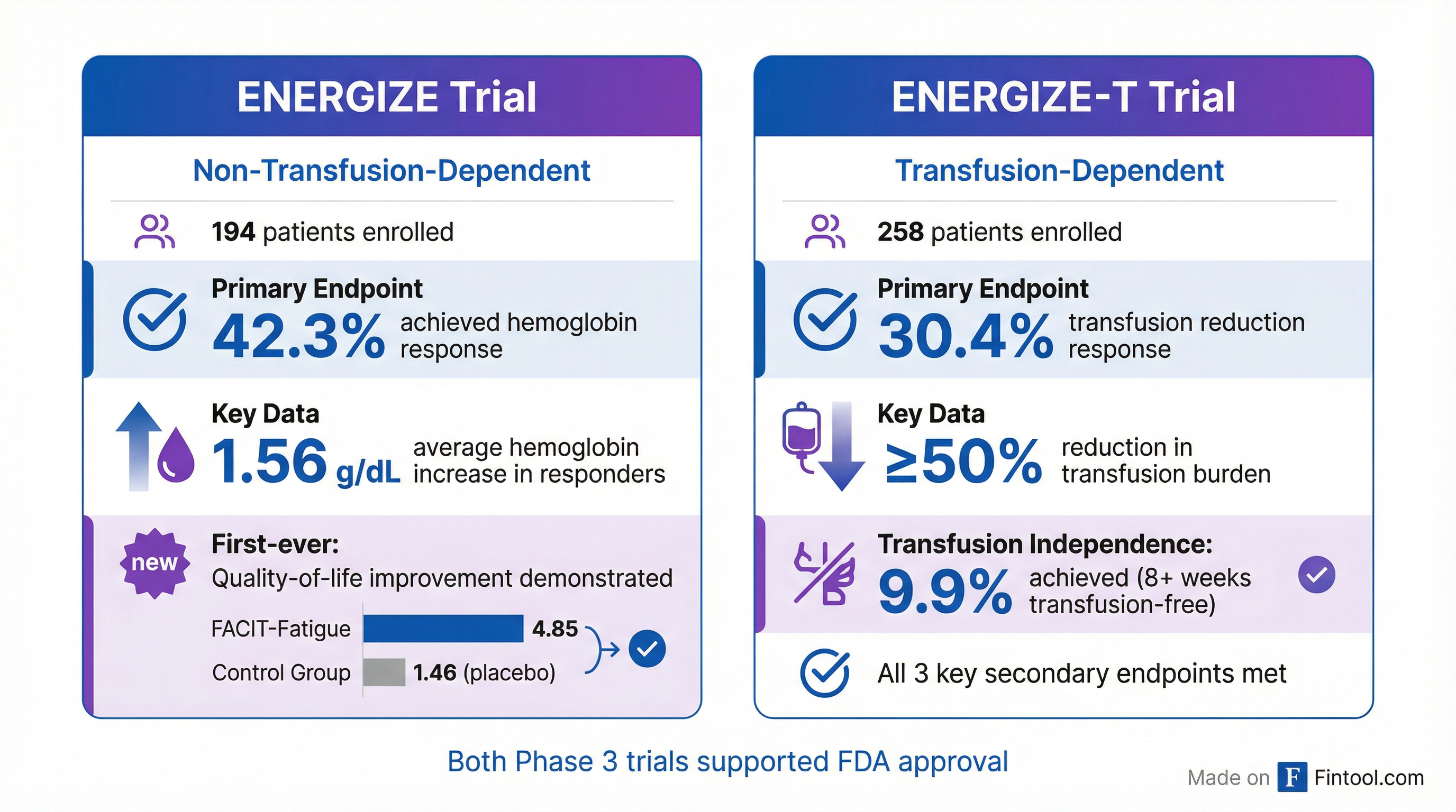 The FDA approval was supported by two global Phase 3 trials—ENERGIZE and ENERGIZE-T—enrolling 452 patients across both non-transfusion-dependent and transfusion-dependent populations.