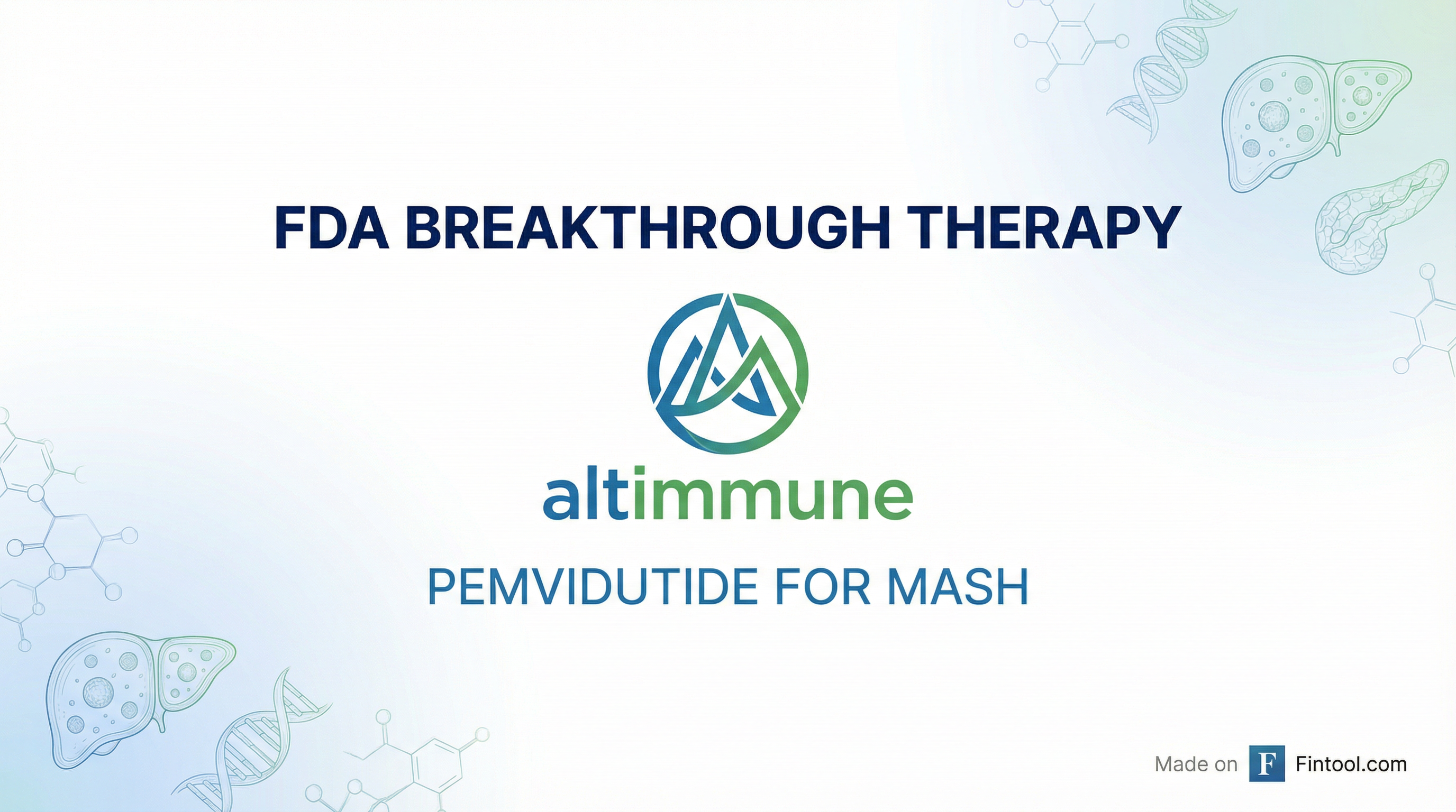 The path to Phase 3 is now clear. Altimmune has aligned with the FDA on a registrational Phase 3 trial design, planned for initiation in 2026. The 52-week trial will incorporate biopsy-based endpoints that could support accelerated approval—a regulatory pathway that becomes significantly more accessible with Breakthrough Therapy Designation.