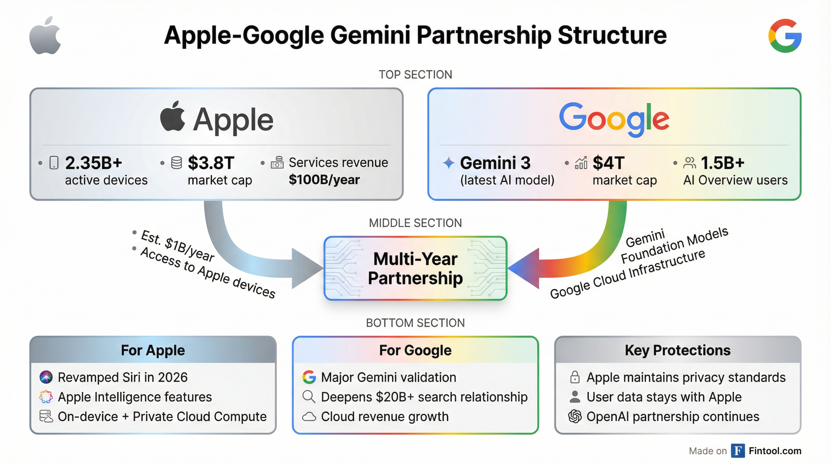For the AI sector: The deal signals a potential shakeout. If Apple—one of the wealthiest, most technically capable companies in history—decided building foundational models wasn't worth it, smaller players may follow suit. The AI infrastructure game increasingly belongs to Nvidia (hardware), Google (models + cloud), and Microsoft/OpenAI.