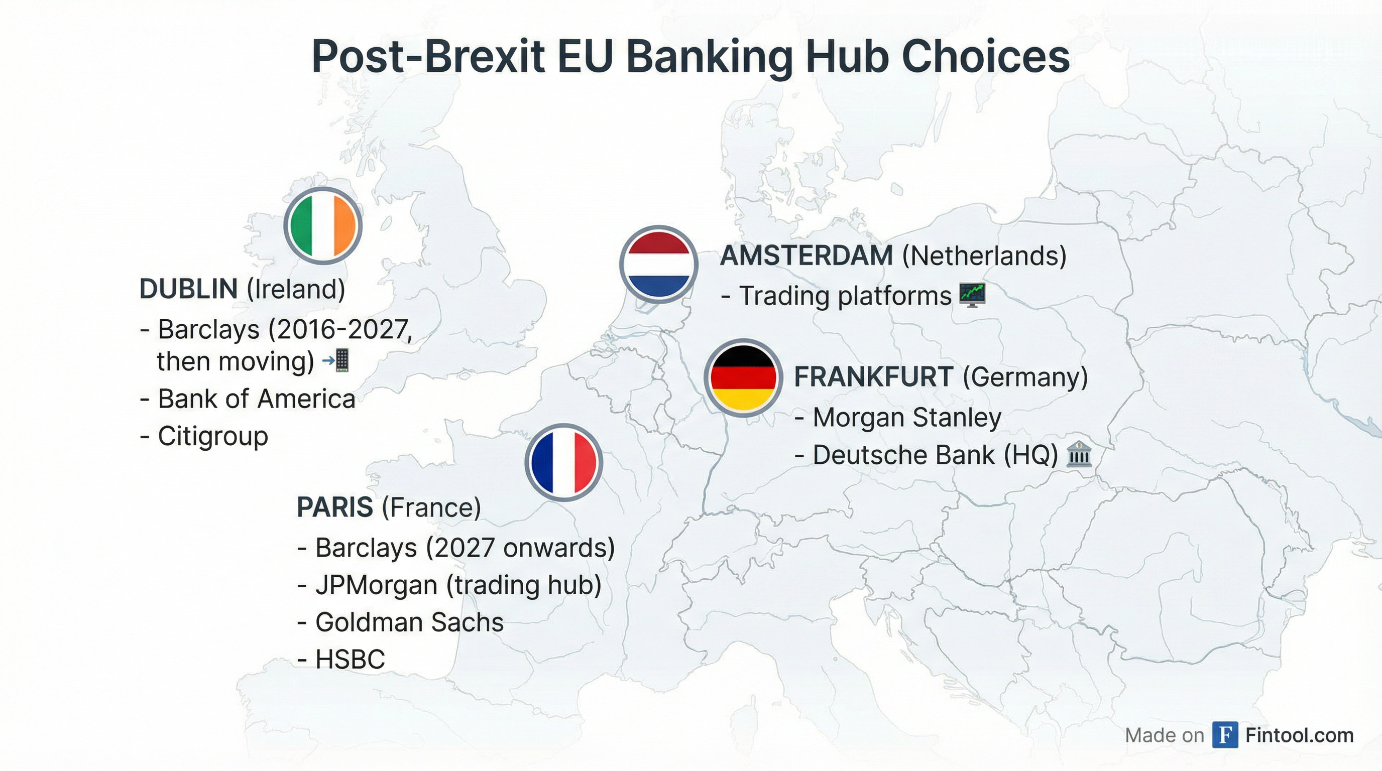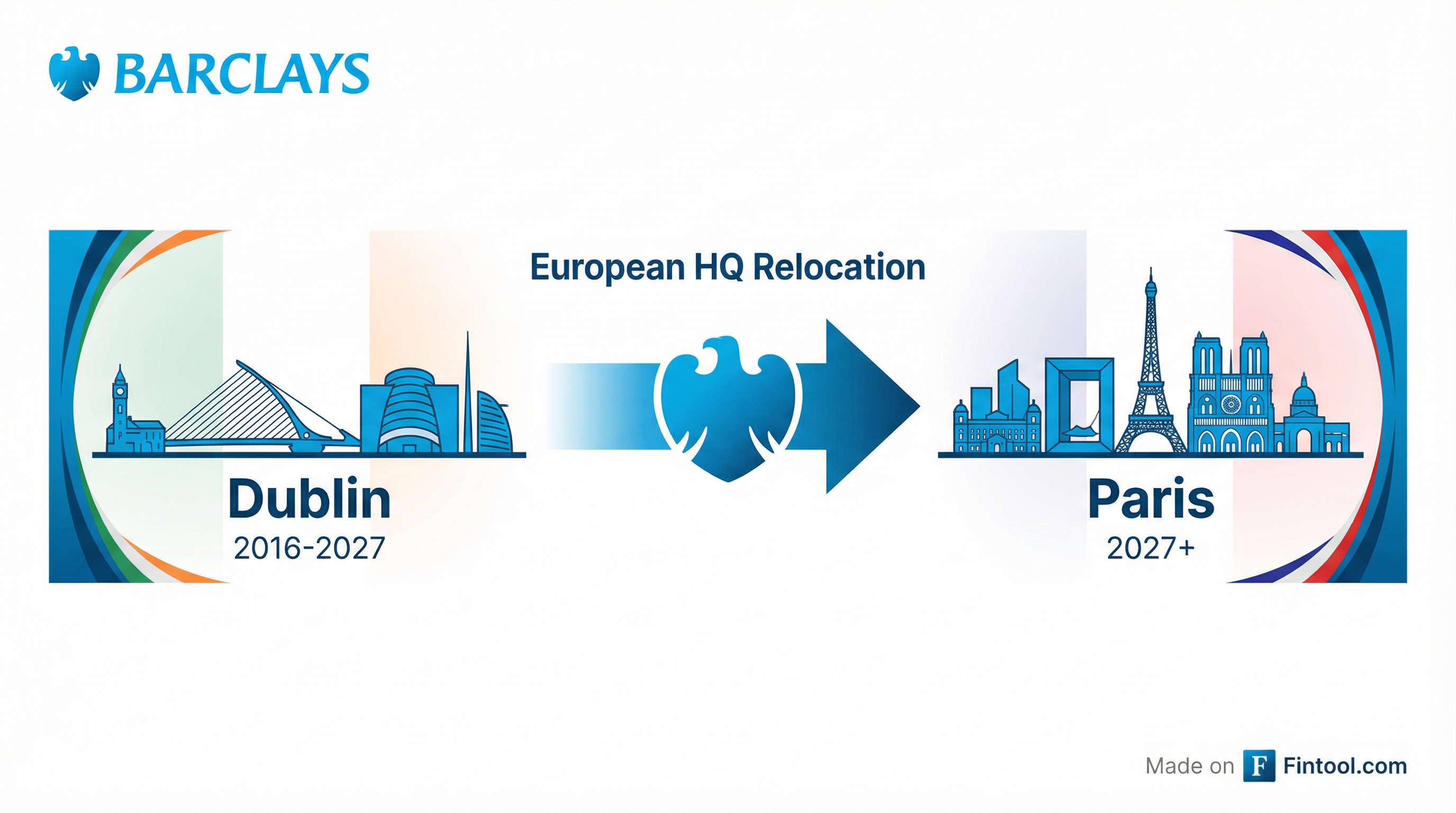The decision reflects a pragmatic reassessment of where Barclays actually does business. While Dublin won the initial beauty contest in 2016 when banks scrambled to establish EU footholds ahead of Brexit, Paris has emerged as the gravitational center for Barclays' continental investment banking operations—the high-margin, high-touch business that drives strategic decisions.