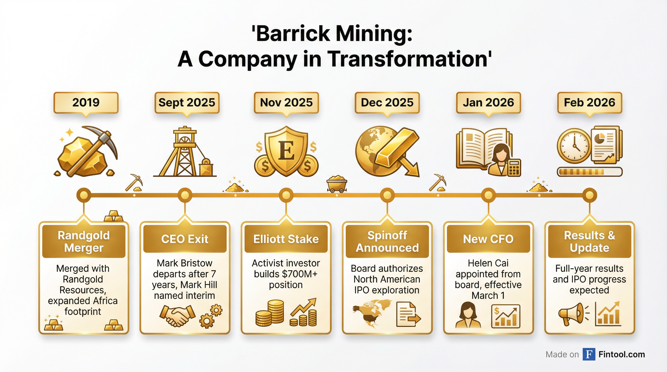 The CFO transition and spinoff exploration come against a backdrop of activist pressure. Elliott Investment Management built a stake reportedly exceeding $700 million in Barrick during 2025, encouraged by the prospect of separating lower-risk North American assets from the company's exposure to challenging jurisdictions.