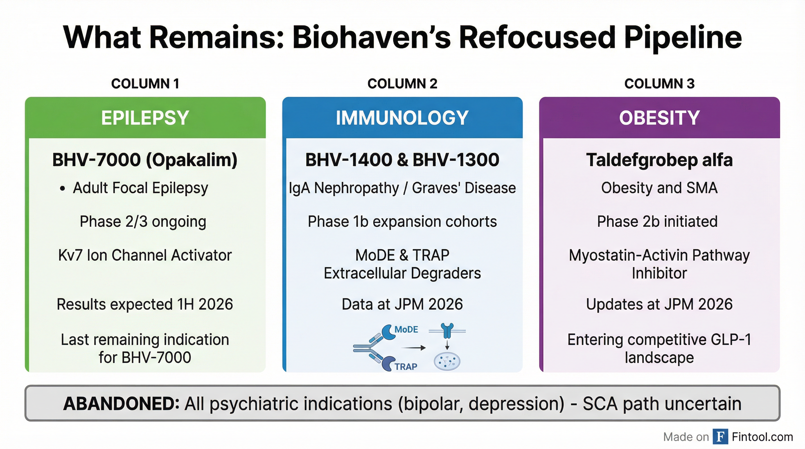 Biohaven confirmed it will abandon all psychiatric clinical development to "keep resources focused on key priority areas of immunology, obesity and epilepsy in 2026."