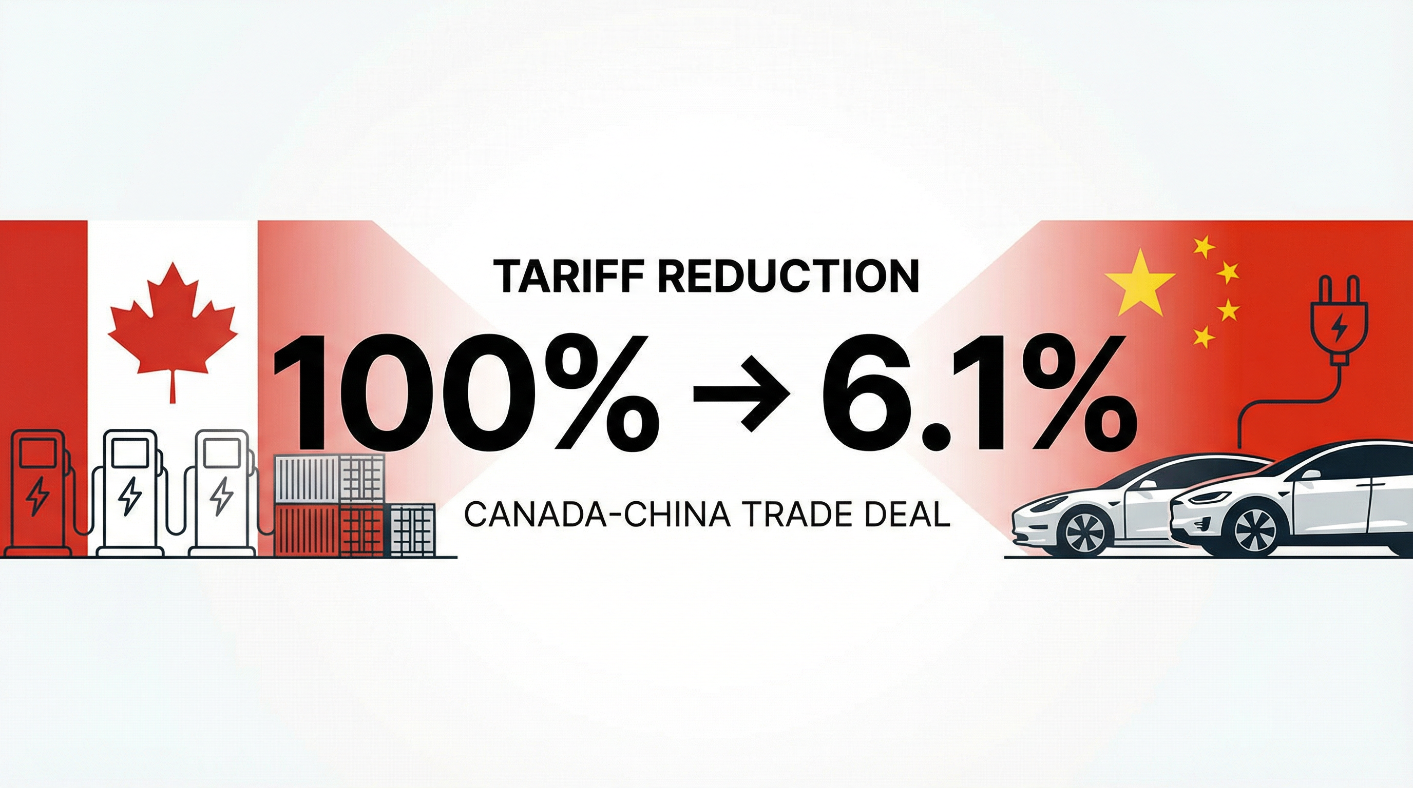 Canada will cut tariffs on Chinese electric vehicles from 100% to 6.1%, Prime Minister Mark Carney announced Friday in Beijing—a dramatic break with U.S. trade policy that brings Chinese automakers one step closer to the American market.