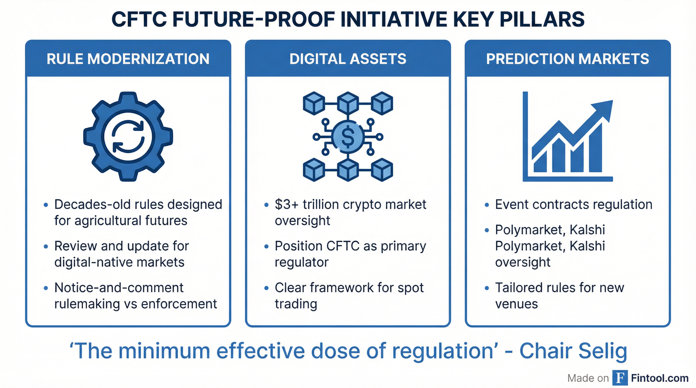 Selig's initiative rests on a fundamental premise: legacy regulations written for traditional commodity futures are ill-suited for digital-native products and trading venues. The Future-Proof framework establishes three core priorities:
