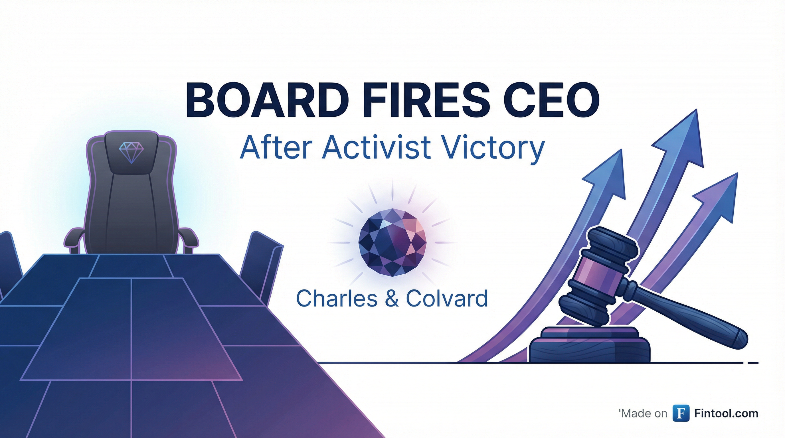 The activist investors who seized control of Charles & Colvard+0.00%'s board in November moved swiftly to clean house, terminating President and CEO Don O'Connell without cause on January 5, 2026 — just six weeks after their election victory was certified.