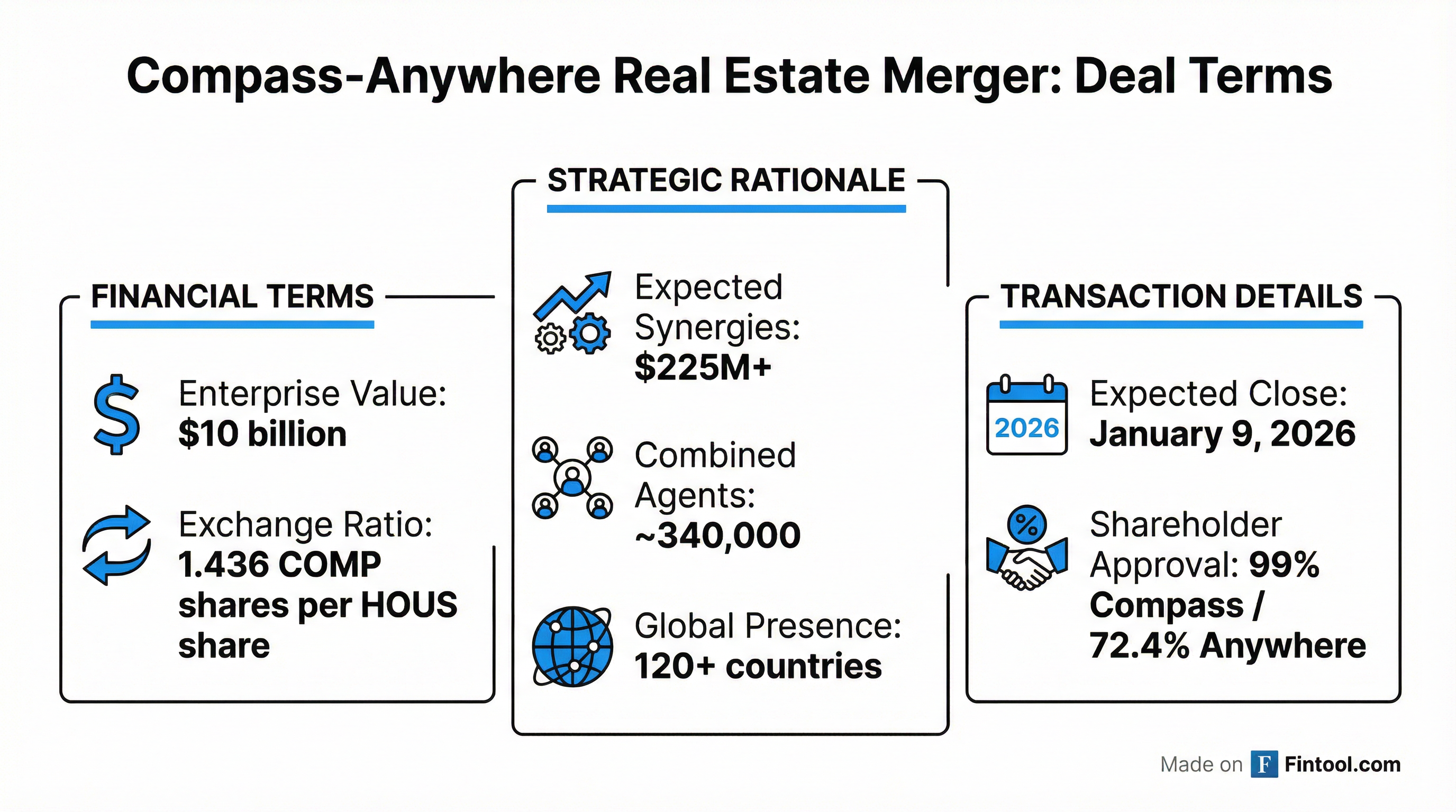 The merger combines Compass's brokerage-focused model with Anywhere's diversified platform. Pro forma combined revenue approaches $10 billion annually .