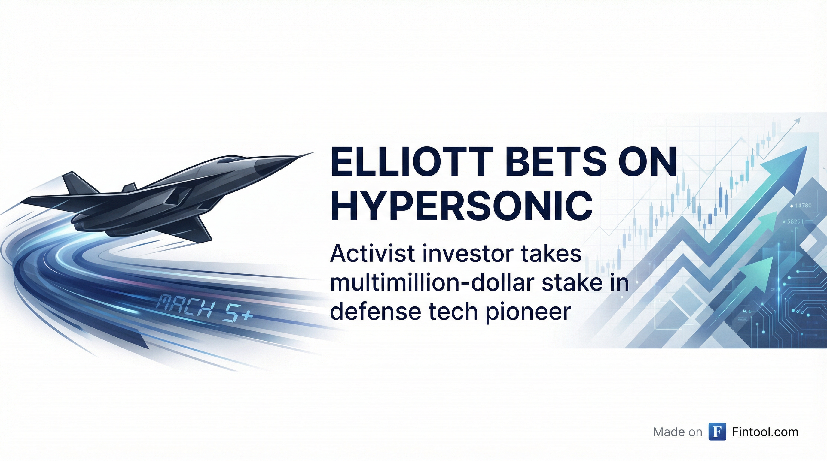 The timing of Elliott's investment reflects growing urgency in Washington. The Pentagon's FY2026 budget request includes $3.9 billion for hypersonic weapons—down from $6.9 billion in FY2025 as programs mature—but remains a top priority as the U.S. races to catch up with adversaries.