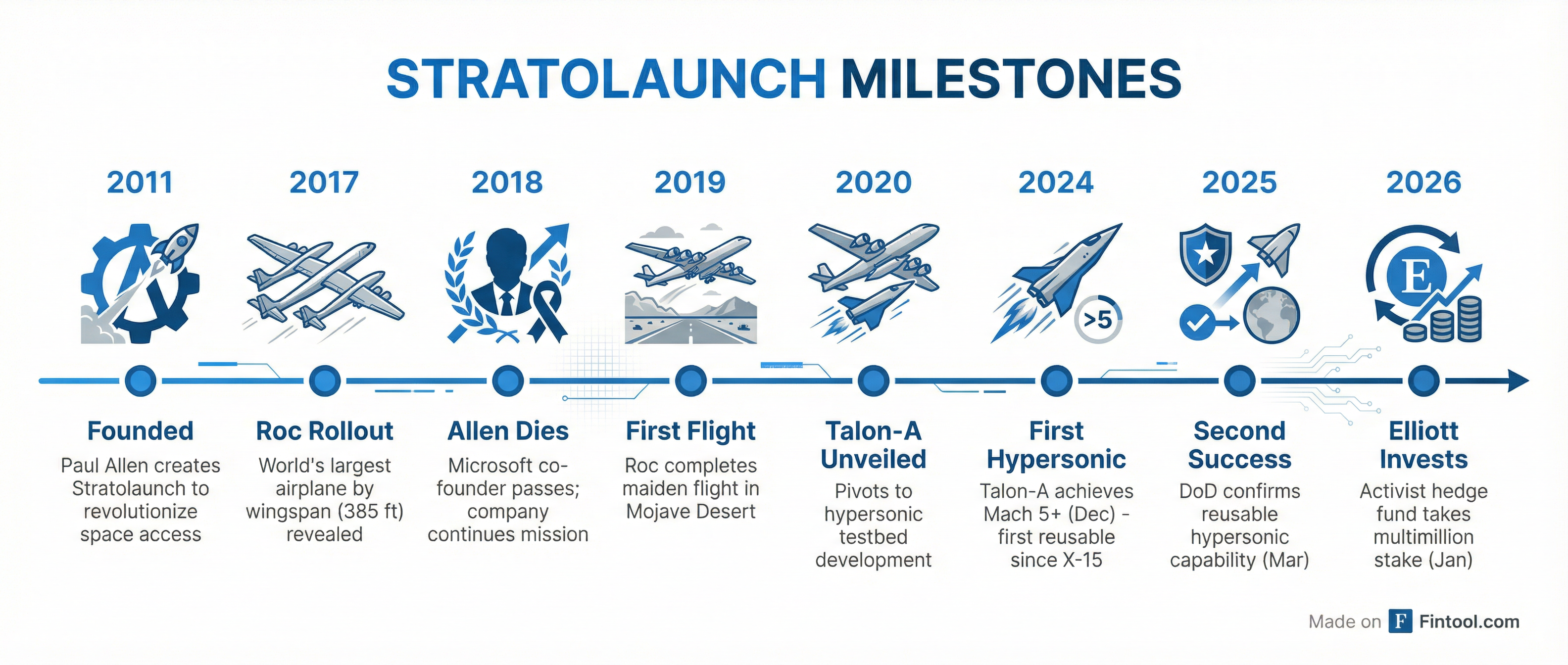 Contract pipeline: Stratolaunch has said it has a full flight manifest through 2025 and has begun booking 2026 tests, with customers including the Missile Defense Agency. Elliott's capital could accelerate expansion of the test fleet.