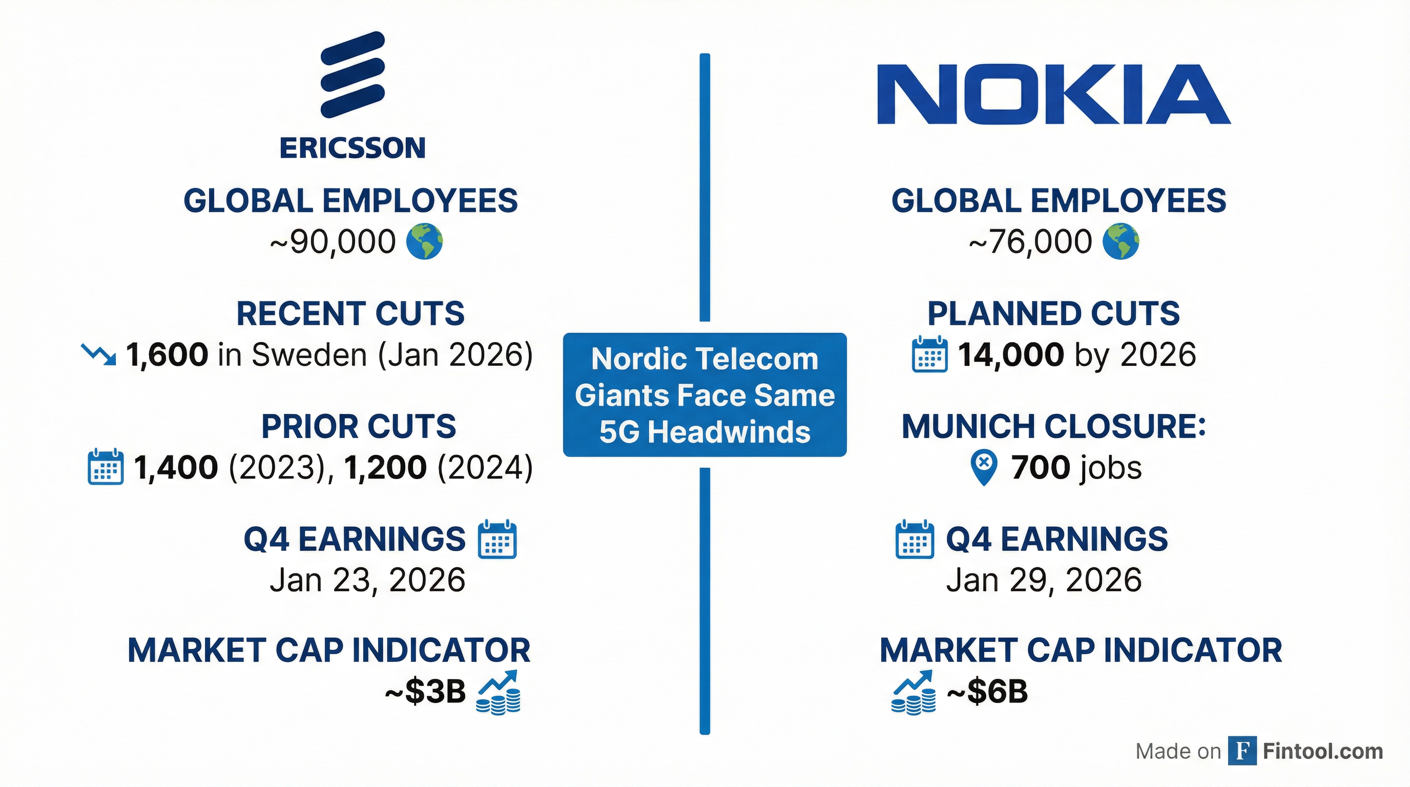 Ericsson+1.28% isn't alone. Finnish rival Nokia+3.93% announced plans to cut 14,000 jobs globally by 2026 and recently disclosed plans to close its Munich office, eliminating over 700 positions by 2030.