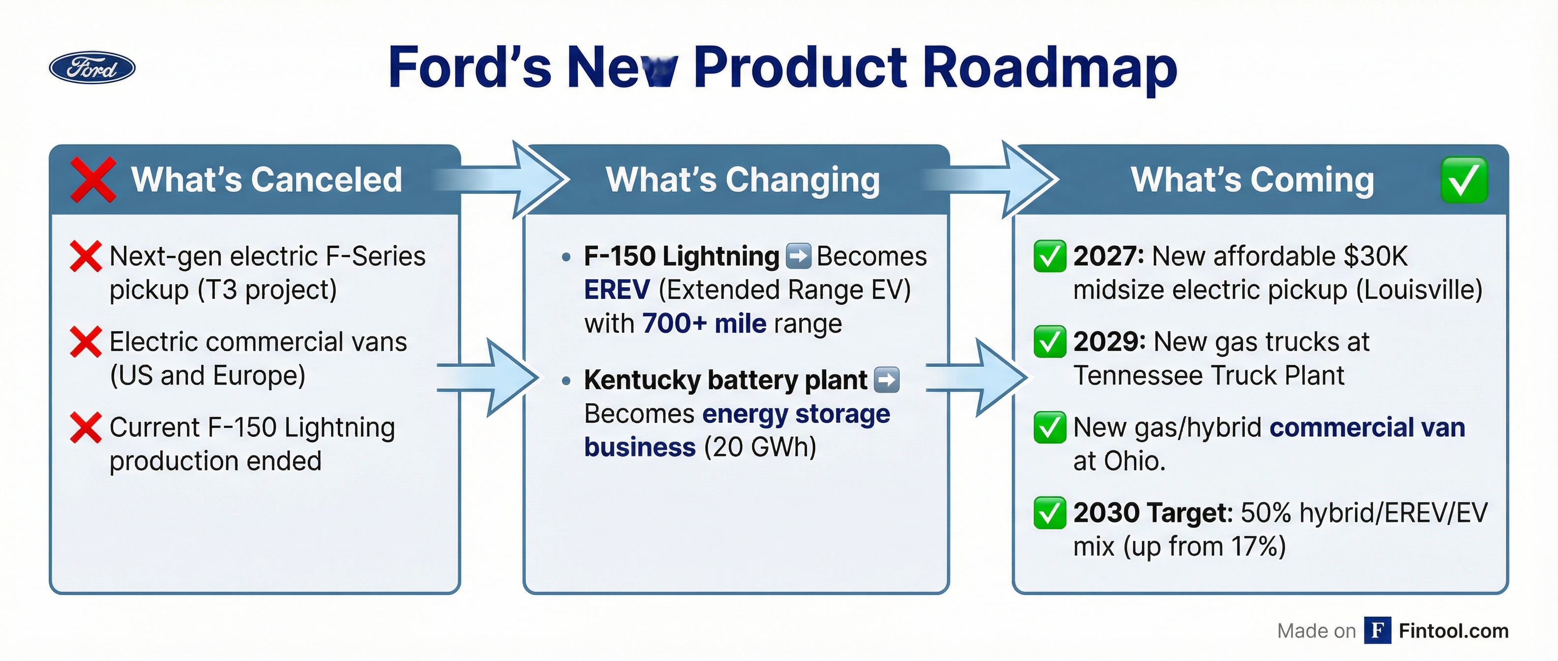The decision marks a watershed moment for America's oldest automaker—and potentially for the entire EV industry. Just four years ago, Ford's "Ford+" plan was a bullish bet on an electric future. Today, CEO Jim Farley is calling it "a customer-driven shift" in response to market realities.