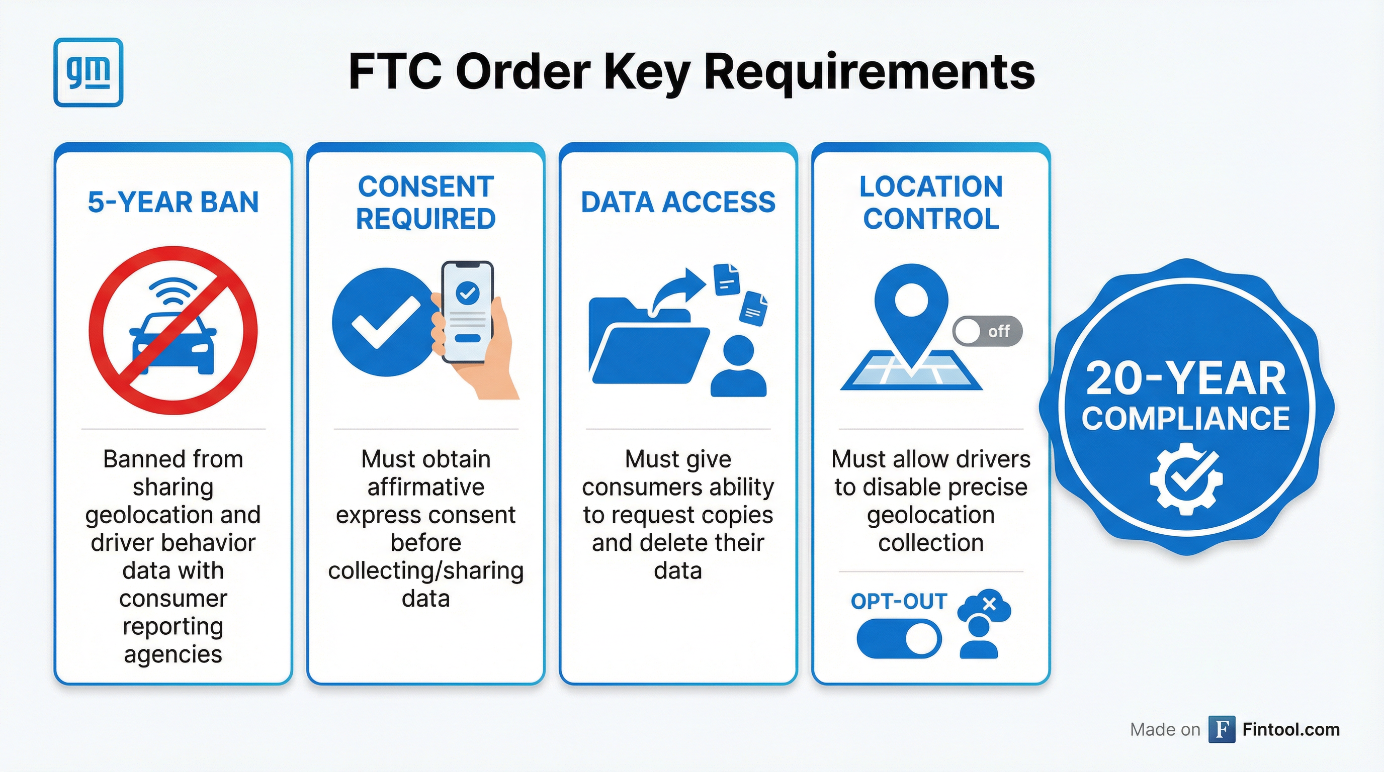 | Data sharing ban | 5 years | Prohibited from disclosing geolocation and driver behavior data to consumer reporting agencies |
