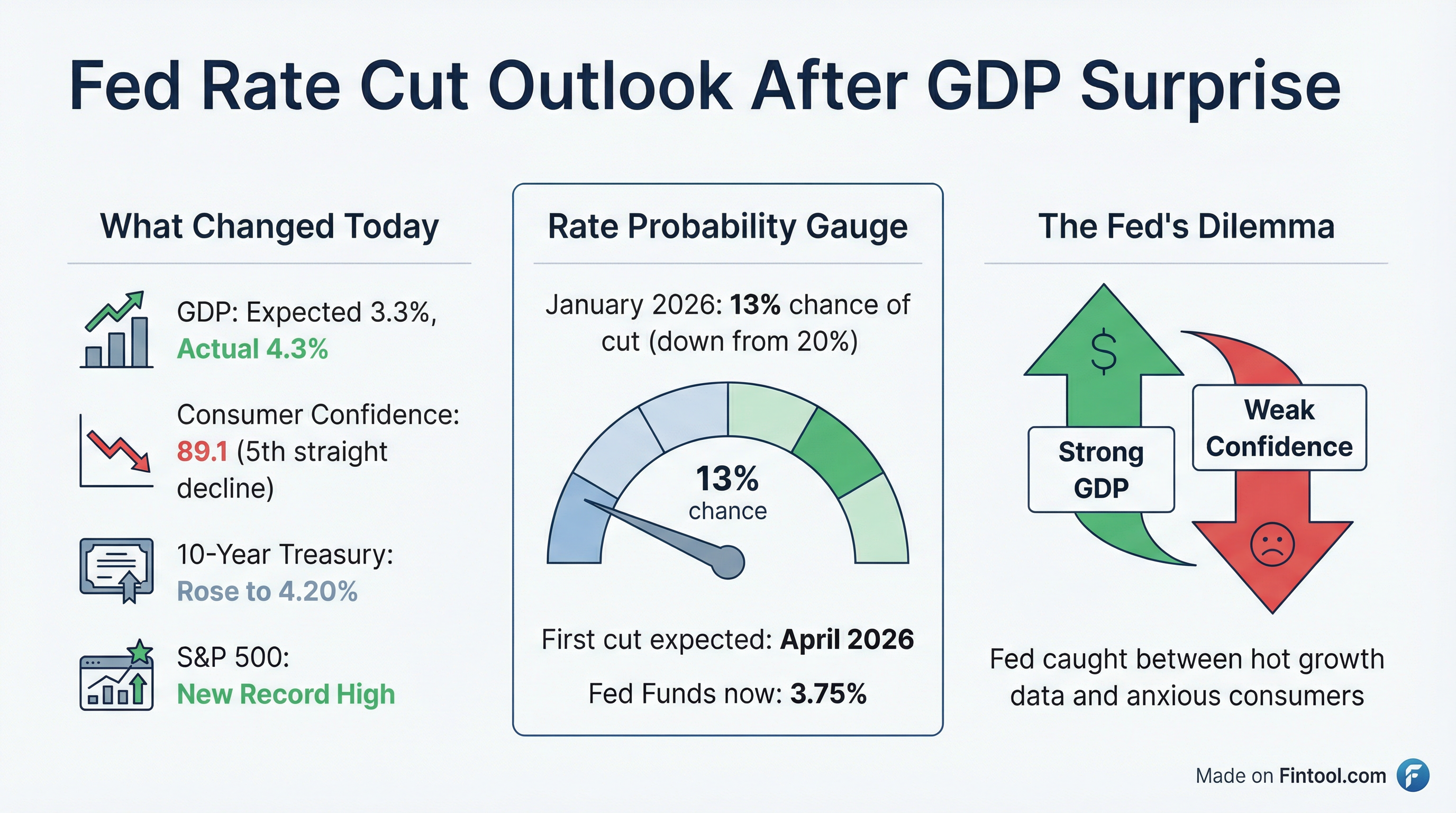 The data dump puts the Federal Reserve in a difficult position. The GDP strength argues against further rate cuts, but the confidence readings suggest underlying fragility in consumer spending—which accounts for roughly 70% of economic activity.