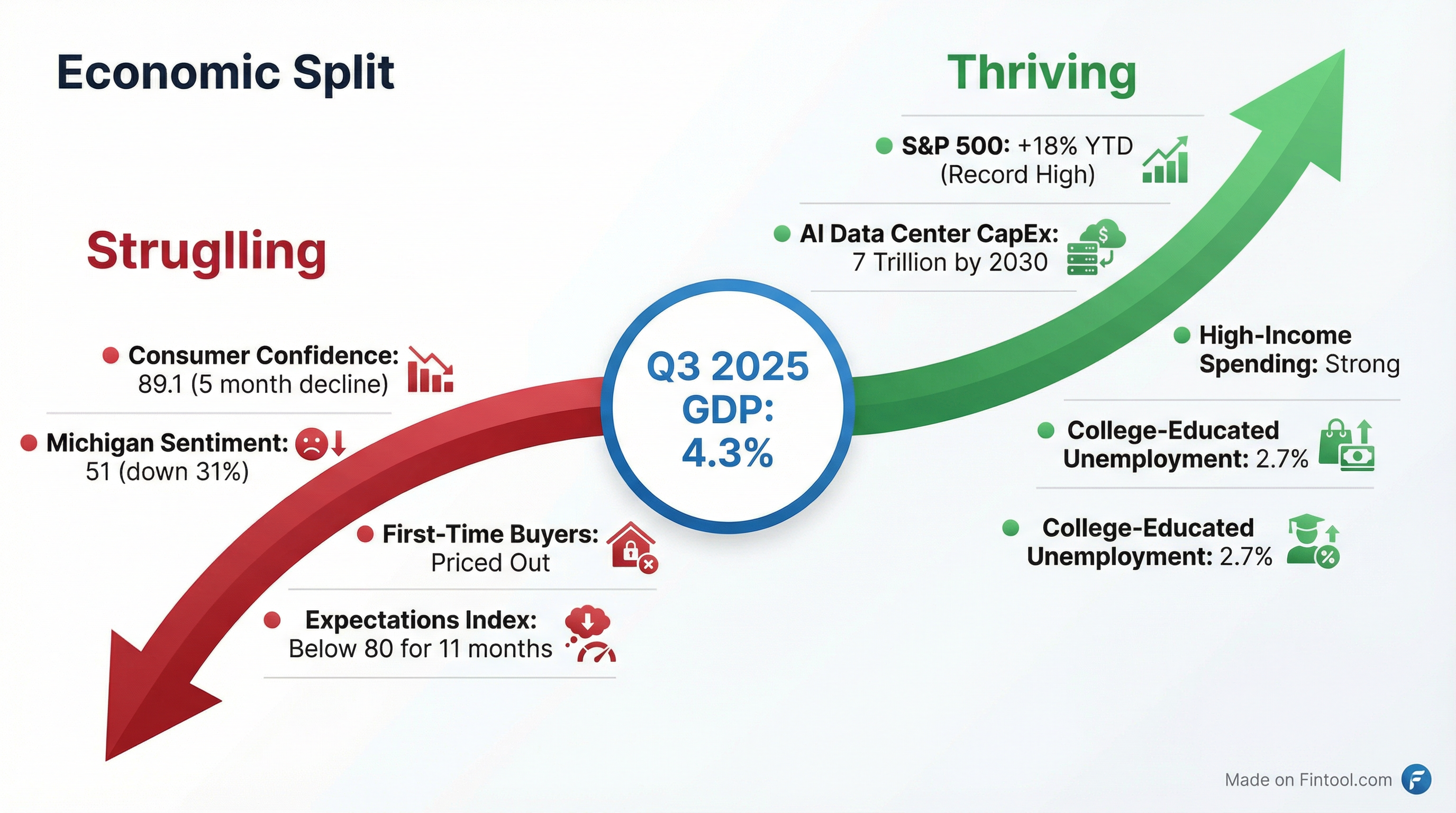The coming weeks will determine whether the GDP surge or the confidence collapse proves more predictive. History suggests confidence matters more over the medium term—but in a K-shaped economy, averages can be misleading.